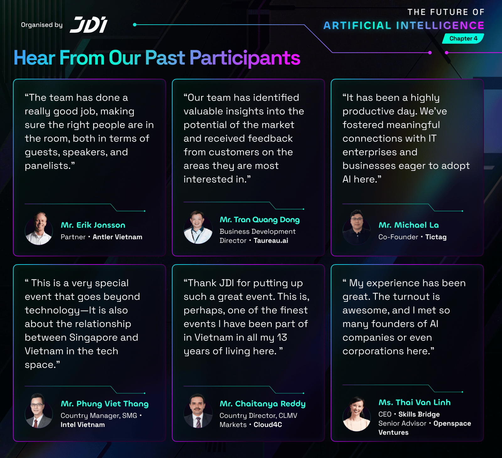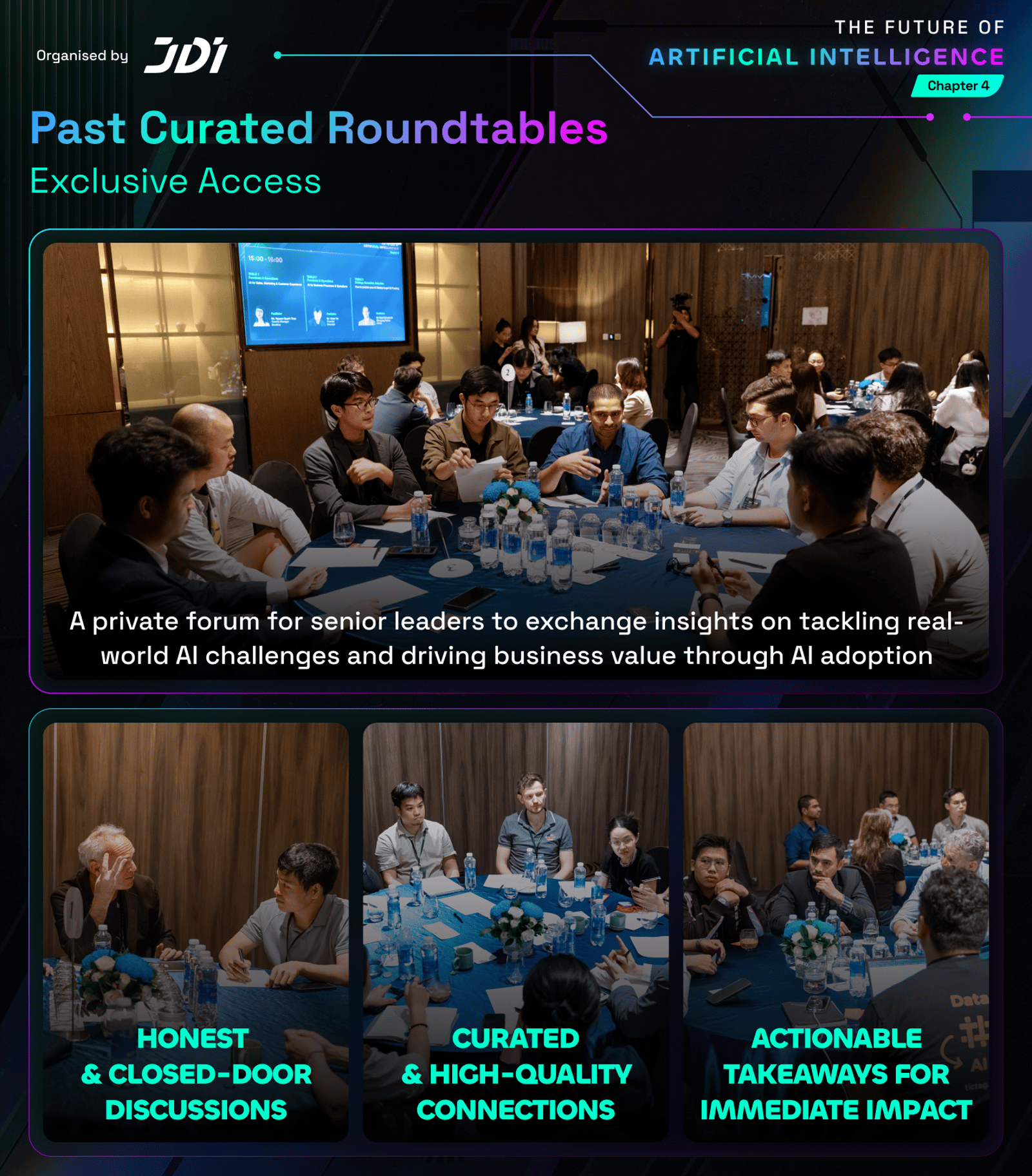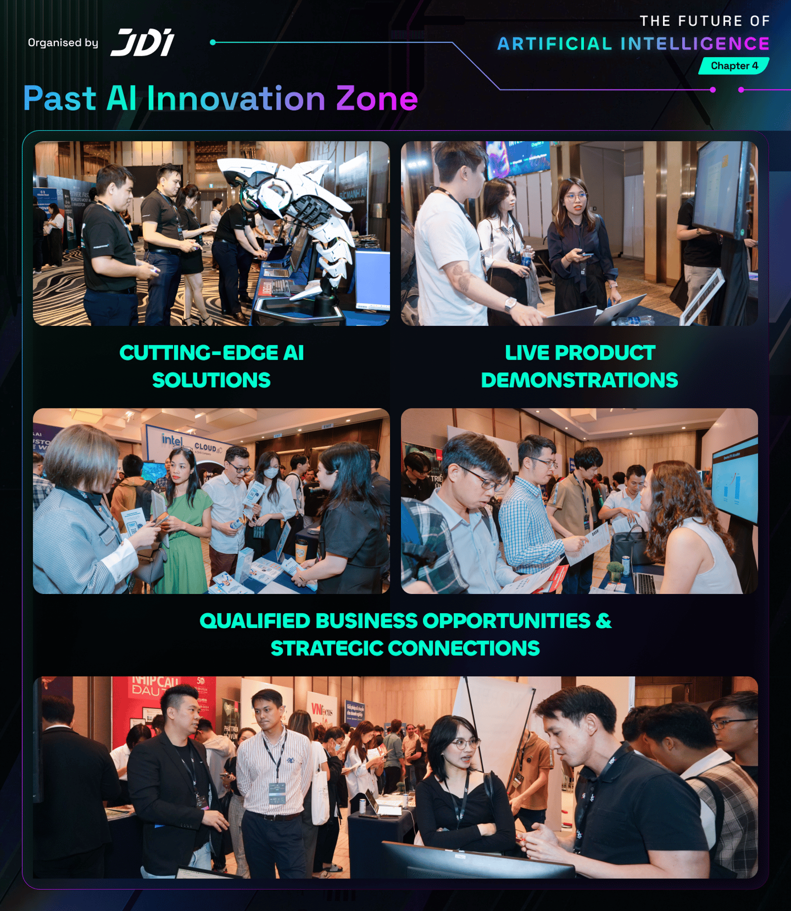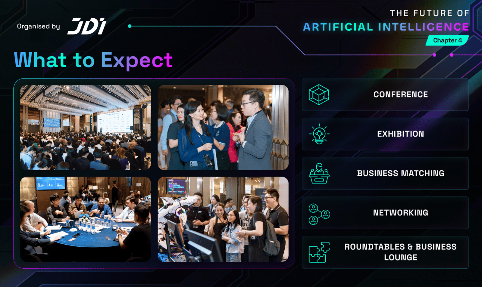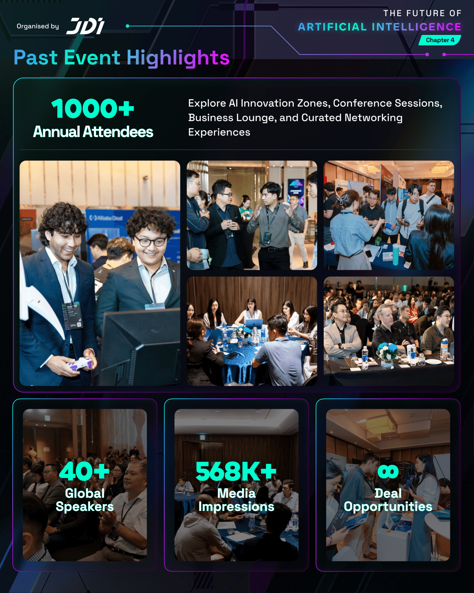 βOrganised by JDI, Chapter 4 will welcome 1,000+ attendees, 35+ global speakers, and 40+ panel sessions in one full day dedicated entirely to AI, focused on real applications, practical discussions, and strategic connections that move ideas into execution under the 4 core pillars: