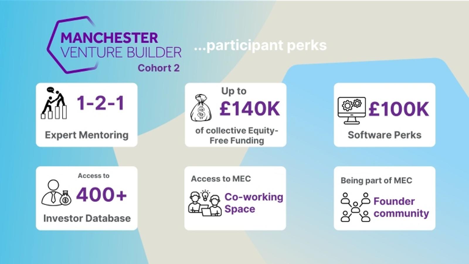 ​Participation in our Manchester Venture Builder Programme is based on verified applications to take part in our 2026 cohort apply here. The application deadline is Sunday 1st March 2026.