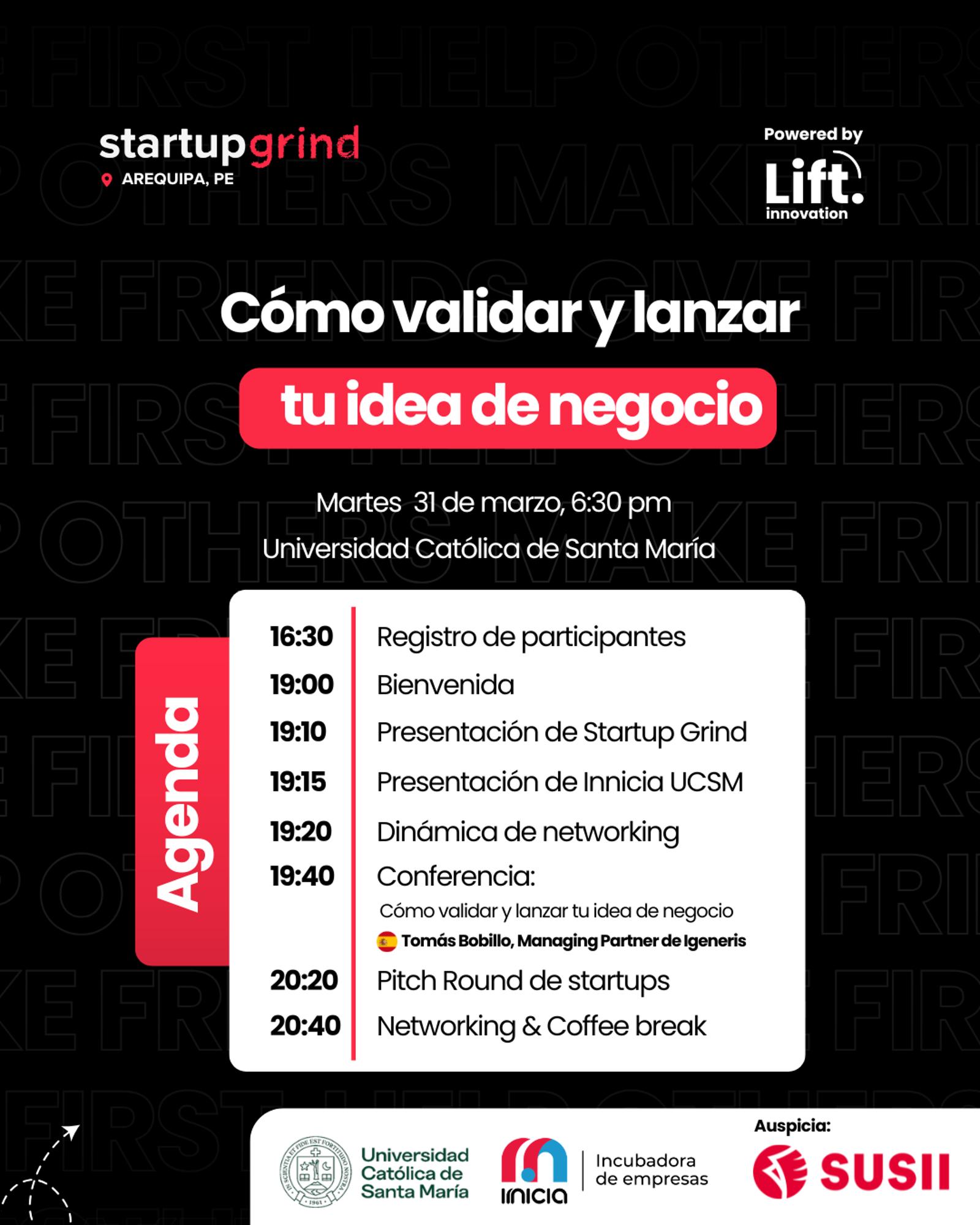 Startup Grind Arequipa: Cómo validar y lanzar tu idea de negocio