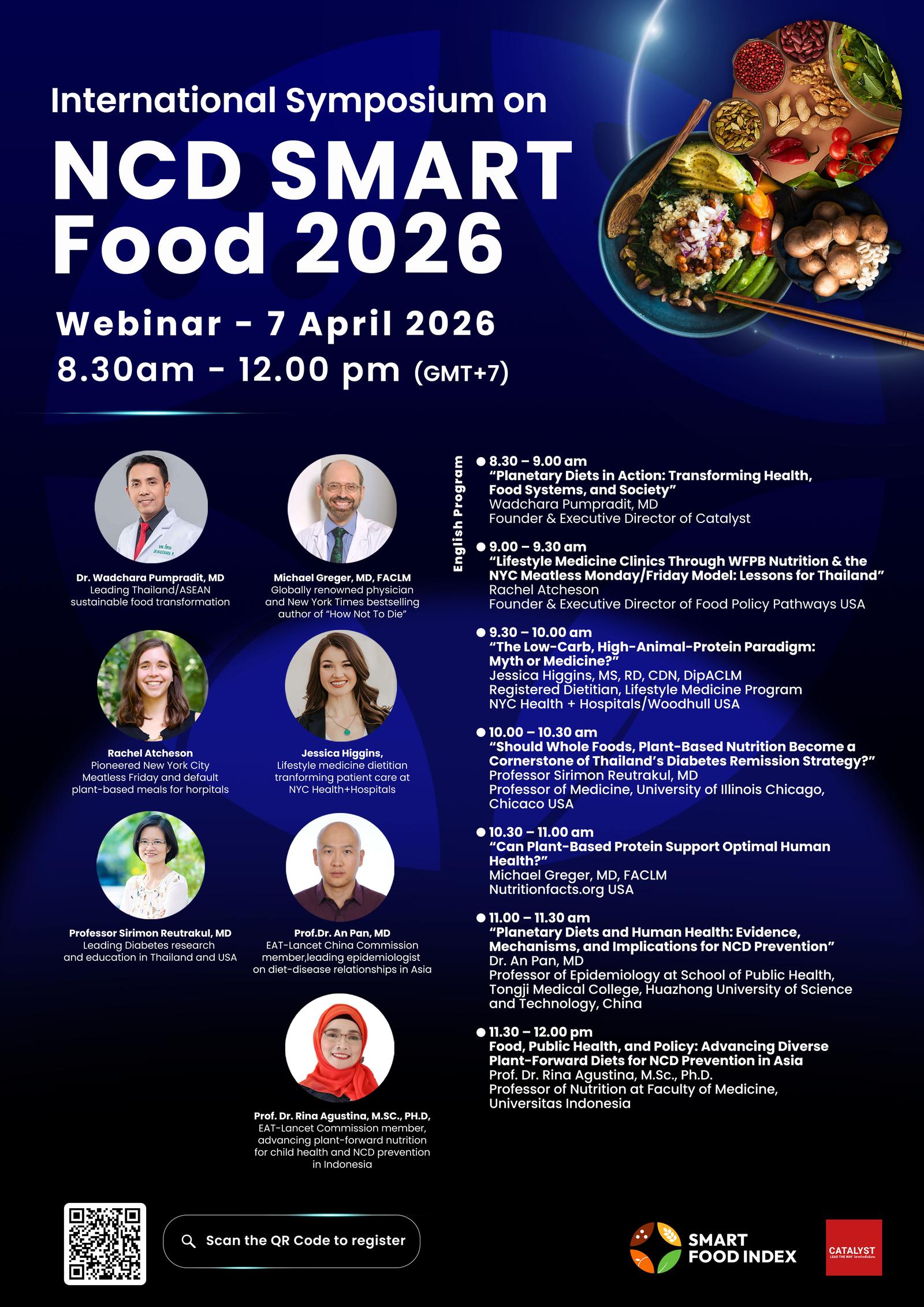 The International Symposium on NCD SMART Food 2026 convenes leading global experts in medicine, nutrition science, and public health to explore how whole-food, plant-rich dietary patterns can prevent and reverse noncommunicable diseases (NCDs) while supporting planetary health.