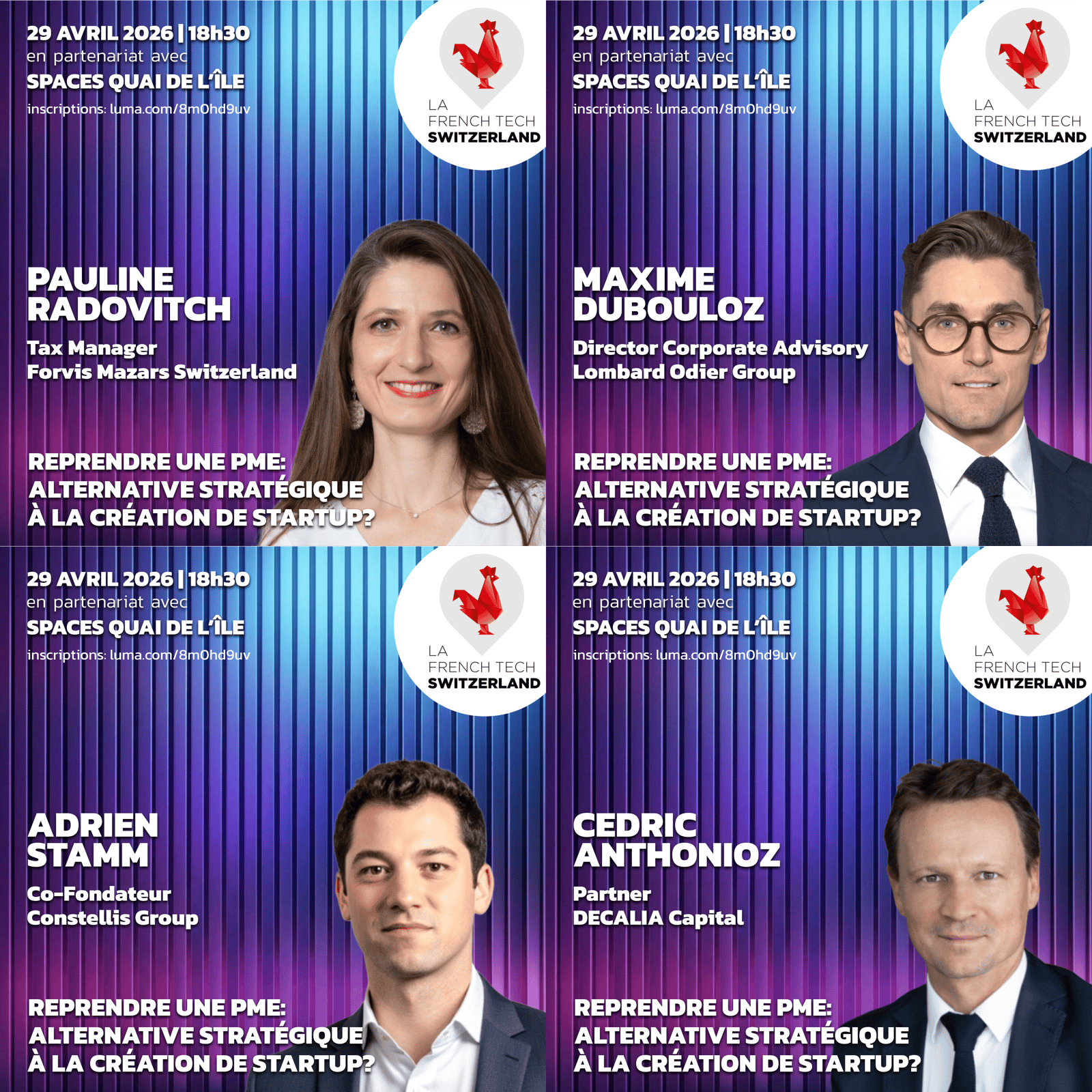 Organisé par La French Tech Switzerland (frenchtech.ch), communauté officielle des entrepreneurs tech francophones en Suisse active depuis 2017. Avec le soutien de Spaces / IWG Regus.