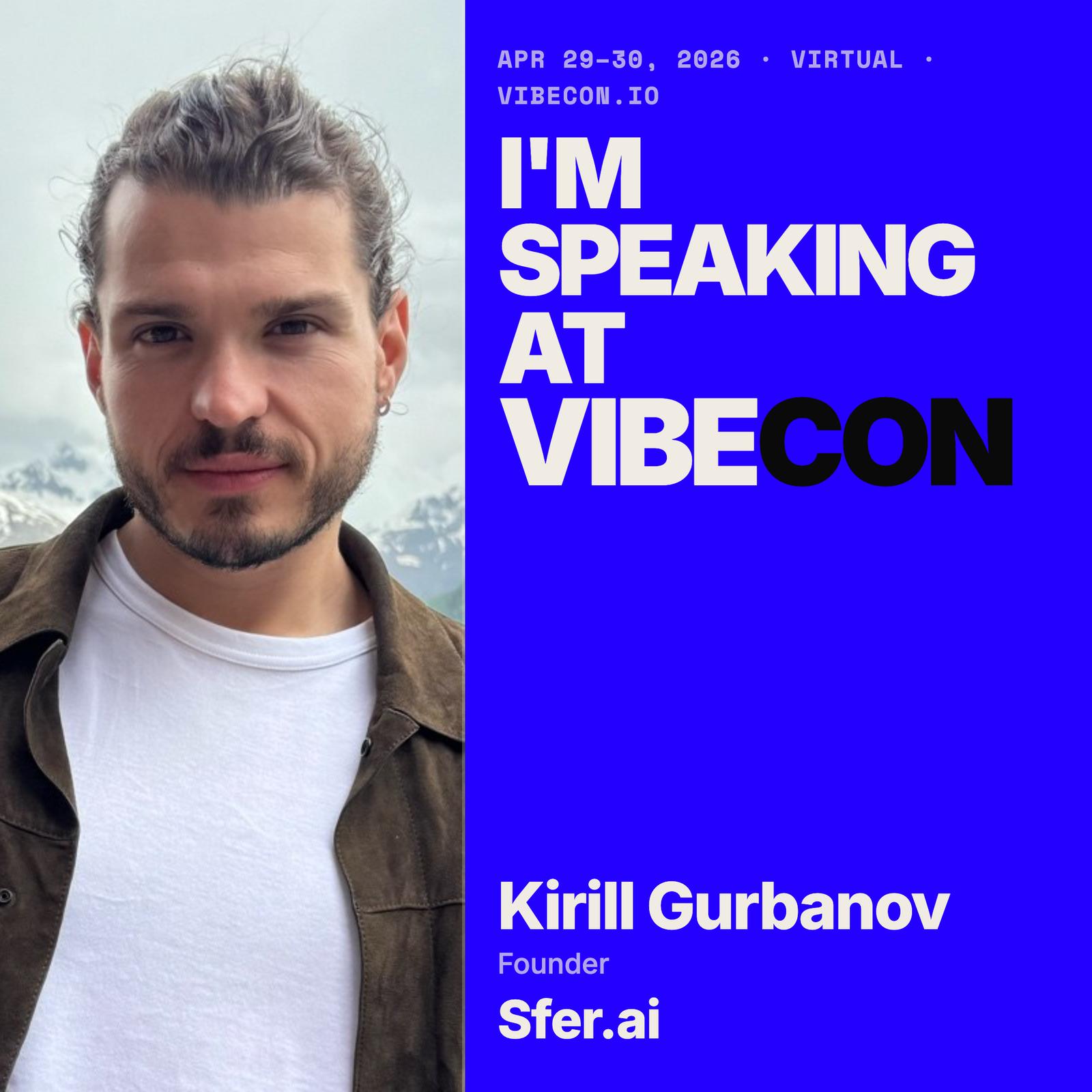 βThe day before VibeCon kicks off, join Kirill Gurbanov, founder of sfer.ai, for a live, build-along session where you'll set up a real vibecoding environment from scratch.