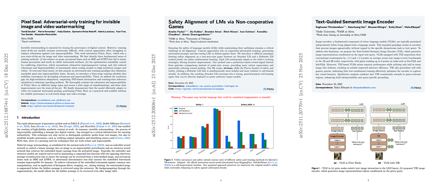 Pixel Seal: Adversarial-only training for invisible image and video watermarking https://arxiv.org/abs/2512.16874 (12.18.2025)