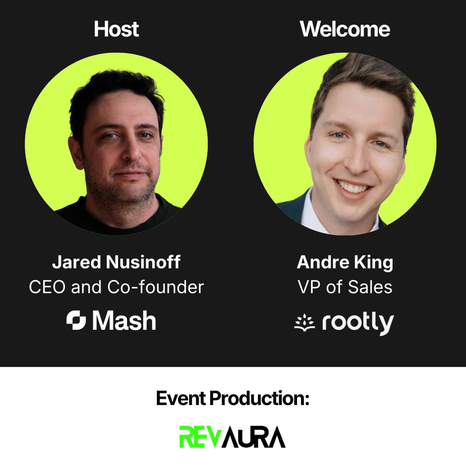 The evening is hosted by Jared Nusinoff, CEO & Founder @ Mash and Andre King, VP of Sales @ Rootly.