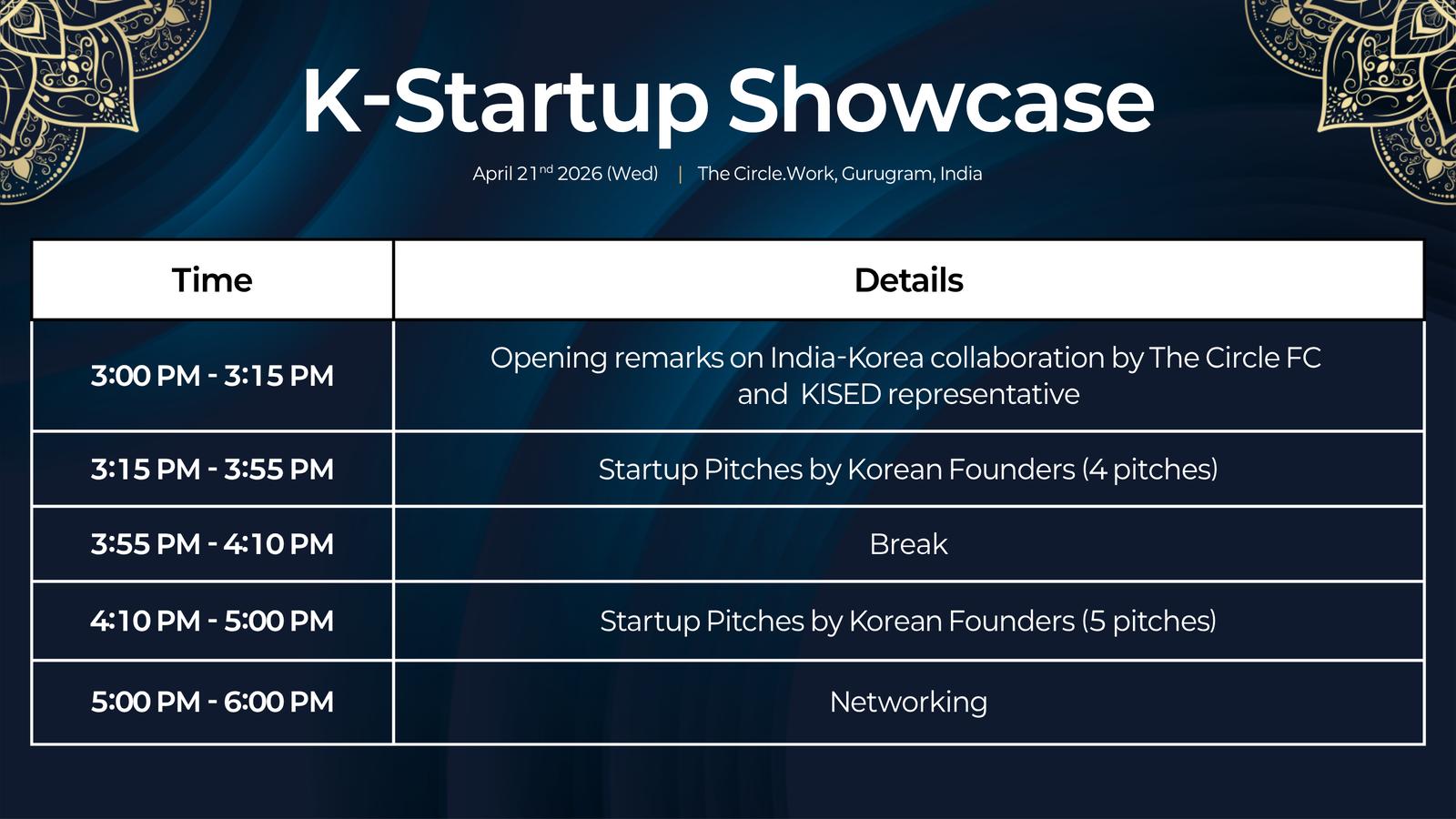 Organized in collaboration with the Korea Institute of Startups and Entrepreneurship Development (KISED), the session features nine high-potential Korean startups exploring entry into the Indian market.