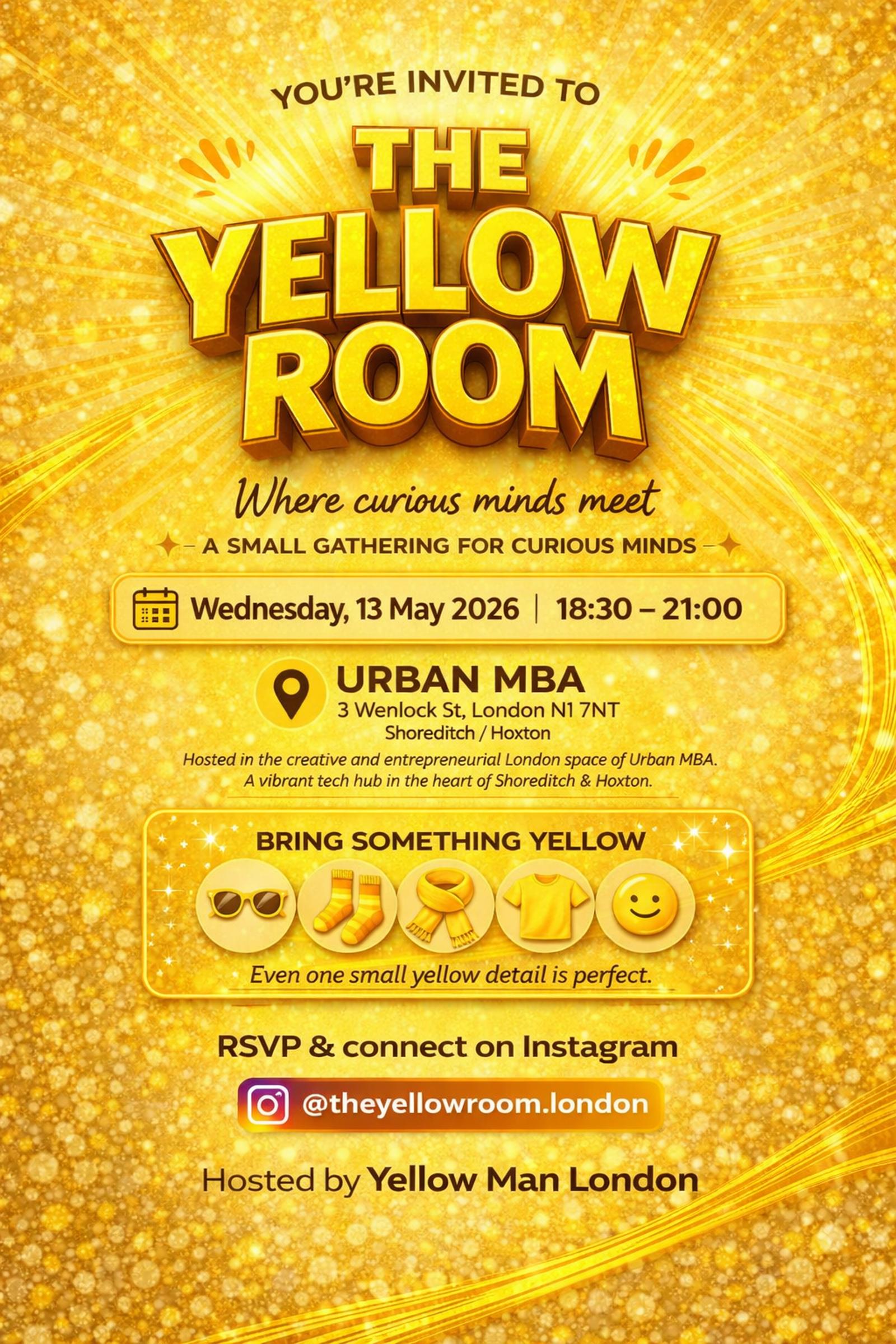 The first Yellow Room will be intentionally small — around 40 people — so the atmosphere stays open, friendly, and genuine.