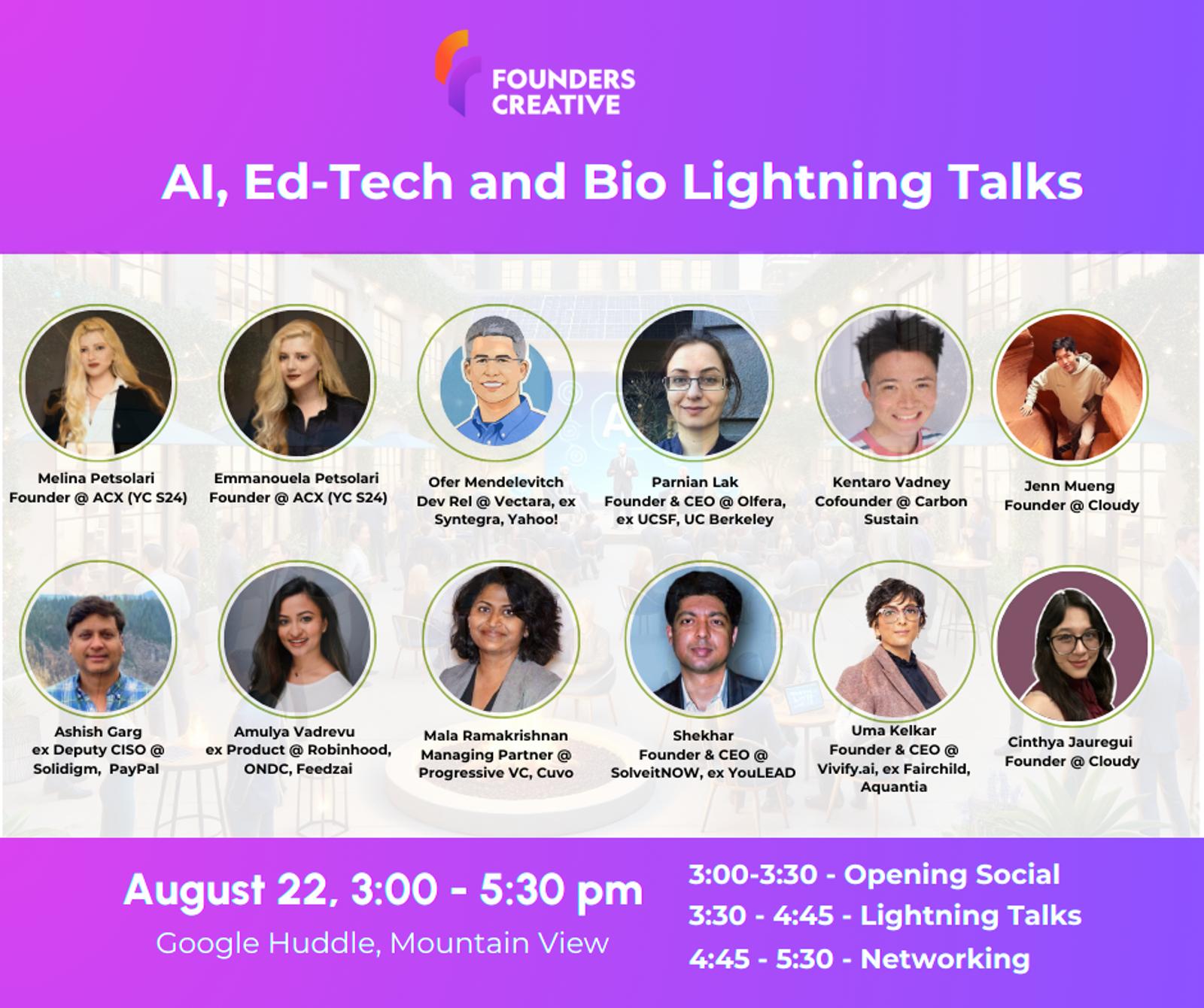 Founder's Creative Presents: AI, EdTech, and Bio Lightning Talks