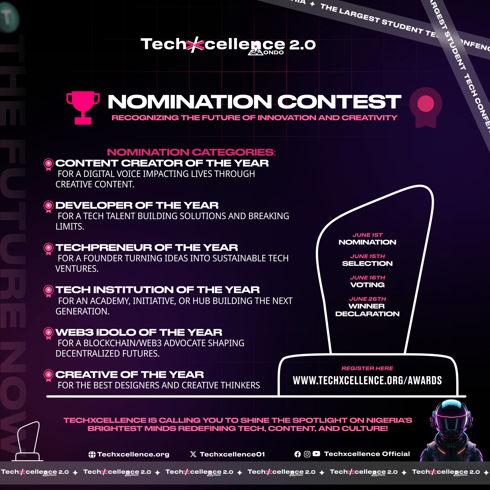 TechXcellence 2.0 is Nigeria’s largest student-led technology and innovation conference, designed to inspire, educate, and empower the next generation of tech-savvy youth. Building on the success of its inaugural edition, TechXcellence 2.0 deepens its focus on the practical applications of Web3, Artificial Intelligence, digital creativity, and the future of work.