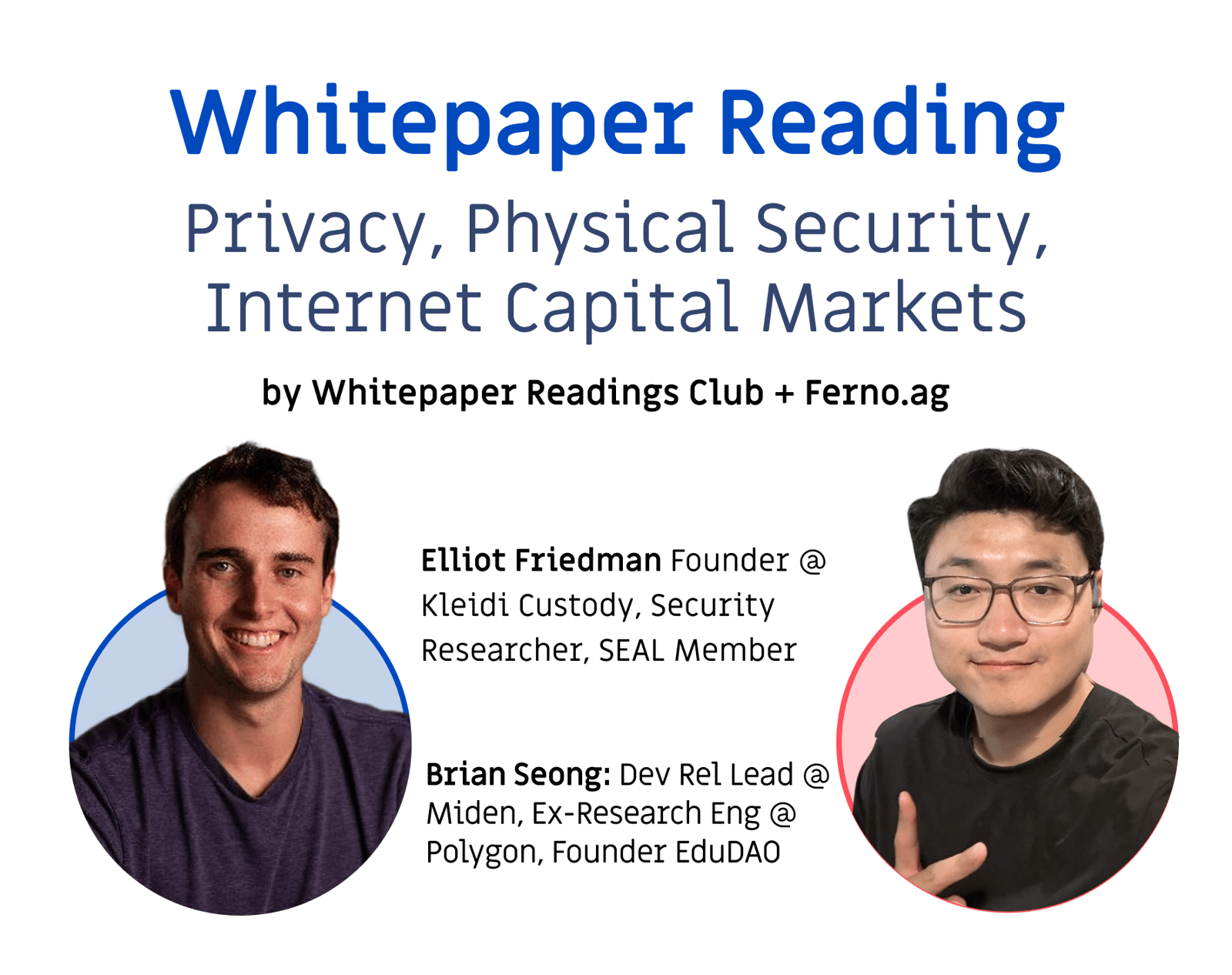 Brian Seong (X): DevRel lead at Miden (Privacy focused network). Co-founder at Whitepaper Reading Club. He was a research engineer at Polygon Labs and co-foudned EduDAO. He's lead multiple discussions for Whitepaper Reading and built the SF Chapter!