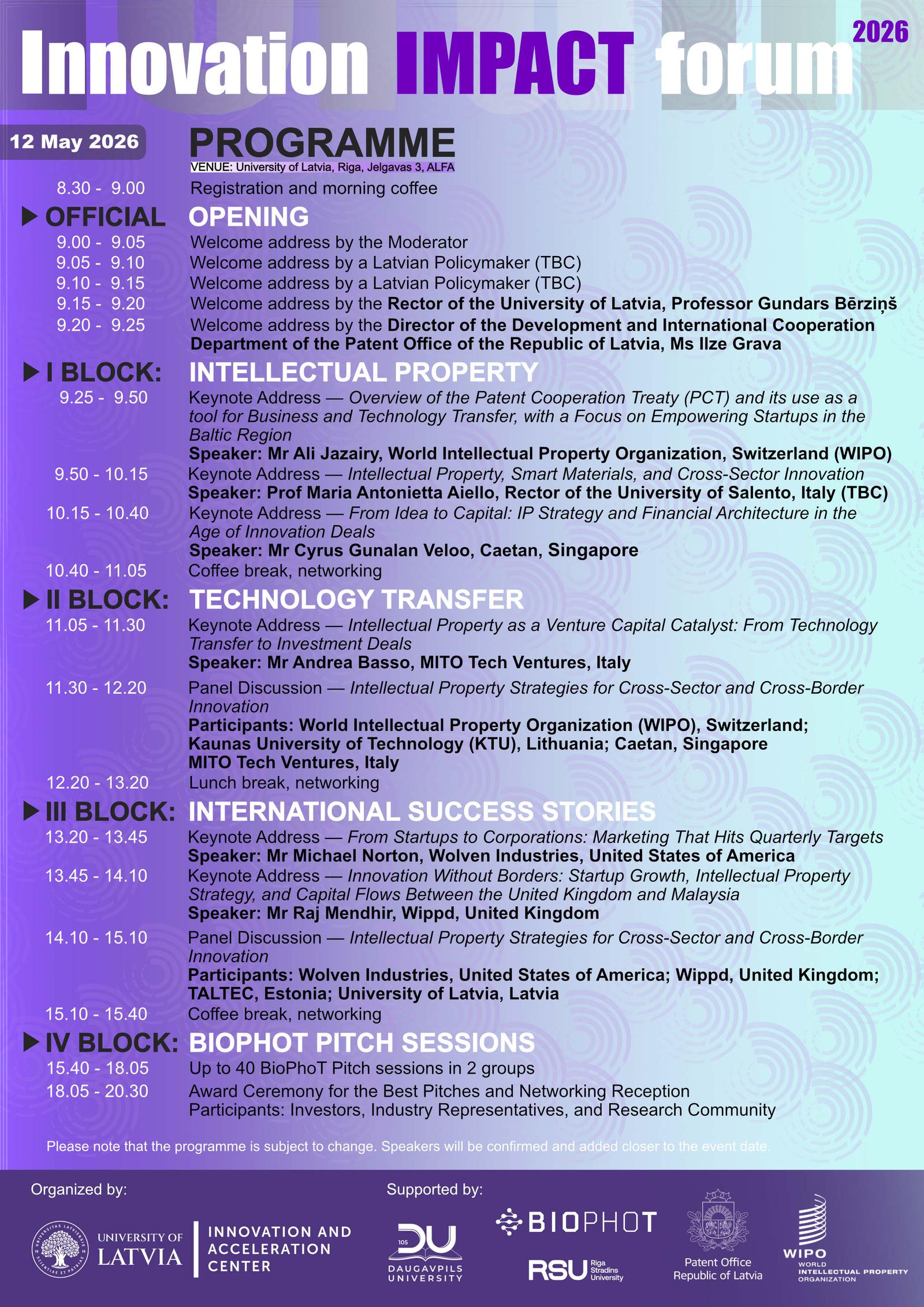 We invite you to attend the deep tech commercialization forum Innovation Impact Forum 2026, which will take place on May 12 at 8:30 AM at the University of Latvia House of Science (3 Jelgavas Street, Riga), "ALFA" auditorium.