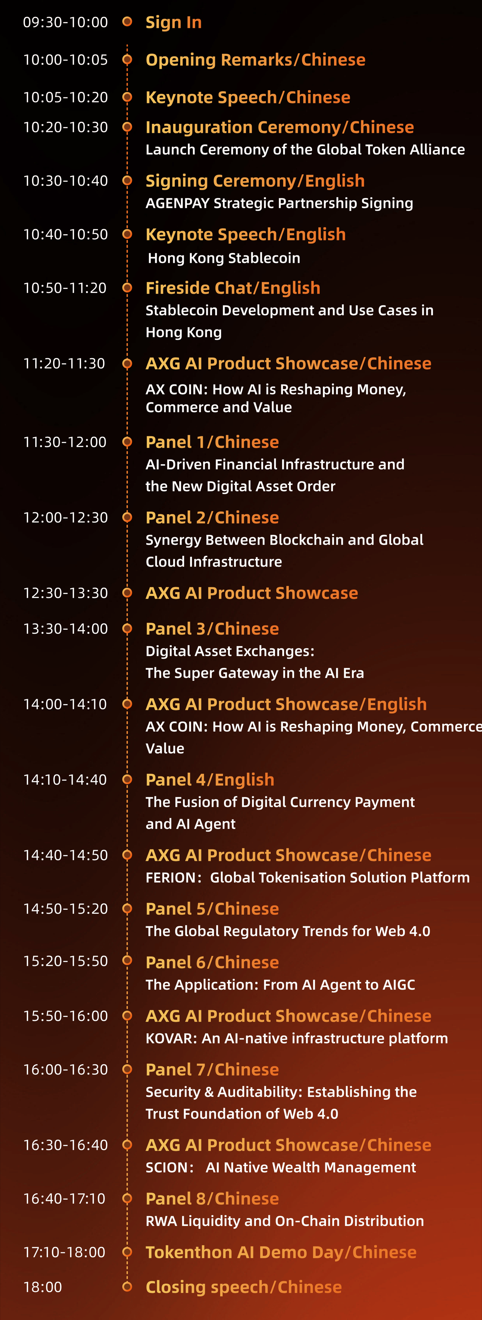 •🌐 巅峰对话:政企学研顶级思想盛宴 特邀香港政府组织代表、全球顶尖 AI 开发者、数字资产发行商等跨界领袖,通过“主题演讲+深度圆桌”的形式,碰撞出科技与金融最前沿的火花。