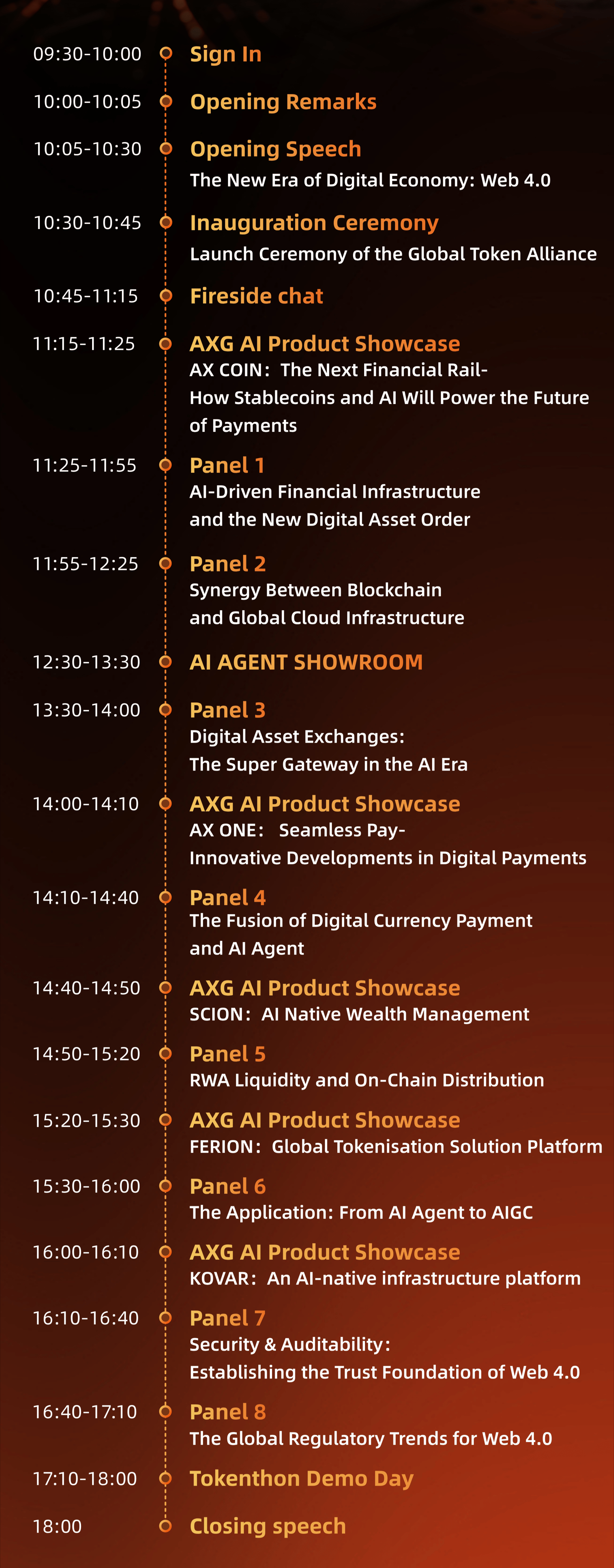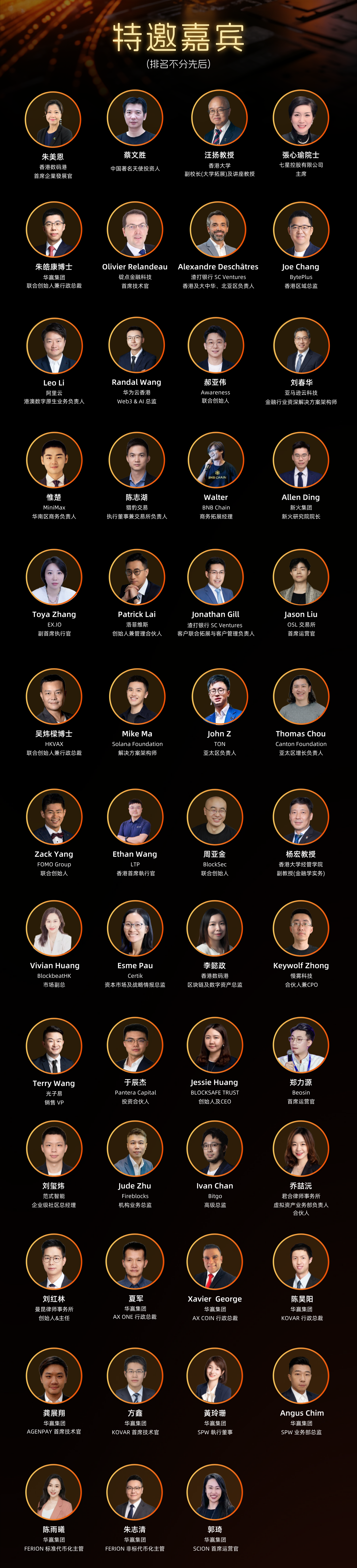 •🌐 巅峰对话:政企学研顶级思想盛宴 特邀香港政府组织代表、全球顶尖 AI 开发者、数字资产发行商等跨界领袖,通过“主题演讲+深度圆桌”的形式,碰撞出科技与金融最前沿的火花。