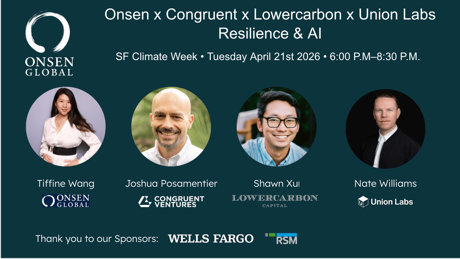Onsen Global x Congruent Ventures x SubAtomic Climate, Resilience & AI — Founders, Funders & Corporates VIP Mixer sponsored by Wells Fargo & RSM.