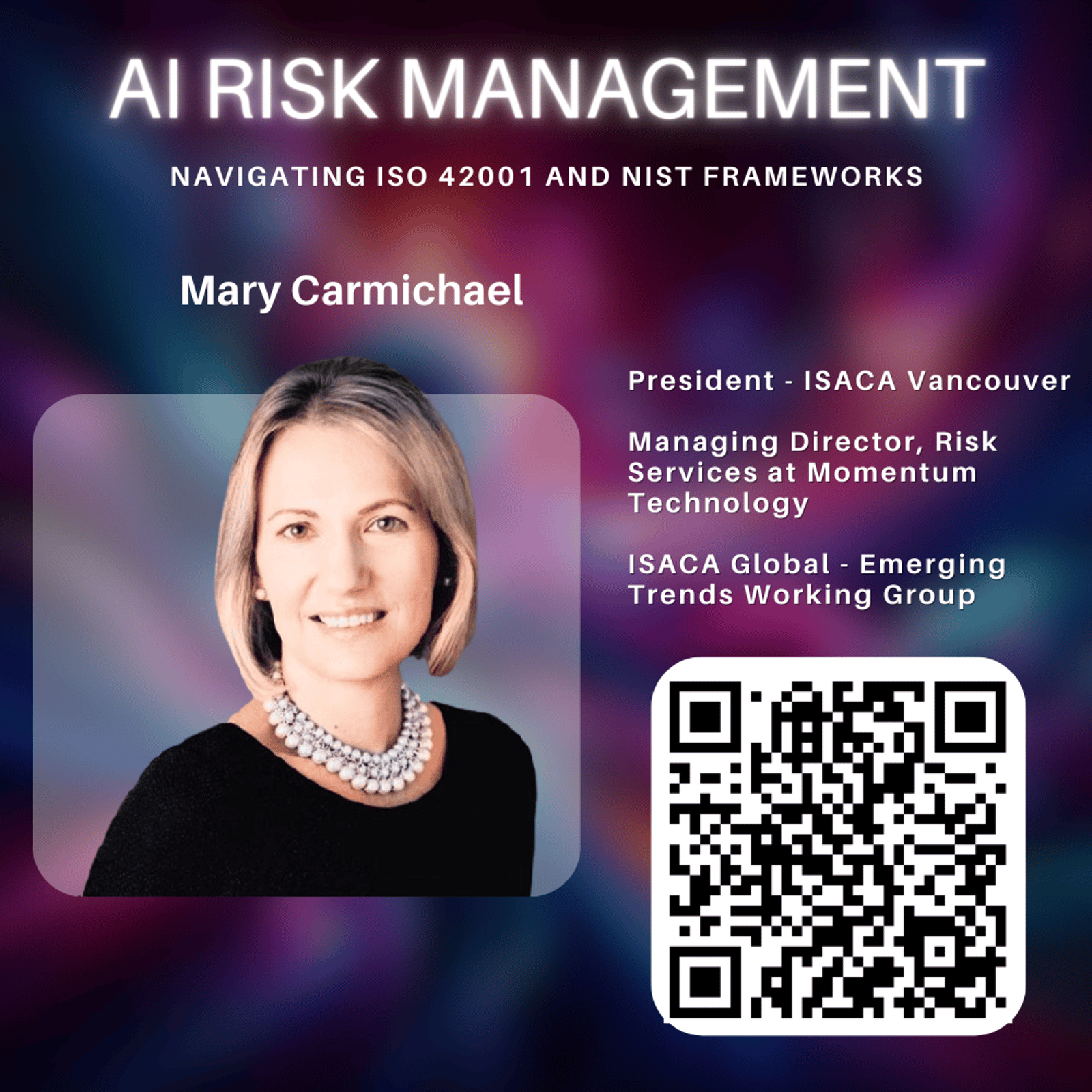 "From Risk to Trust: Building Digital Trust through Risk Management Standards." This event features Keith Jansa, CEO of the Digital Governance Council, and Mary Carmichael, President of ISACA Vancouver, who bring their extensive expertise in digital governance and AI risk management.
