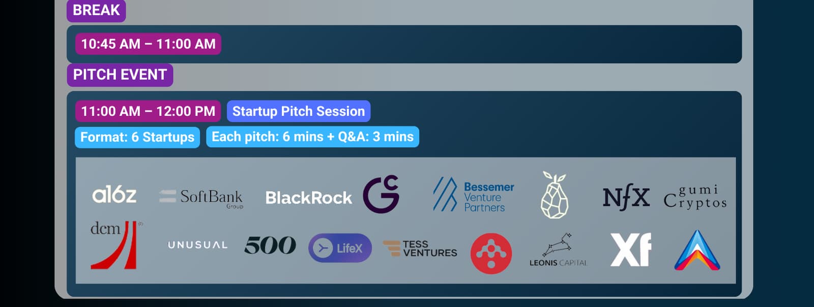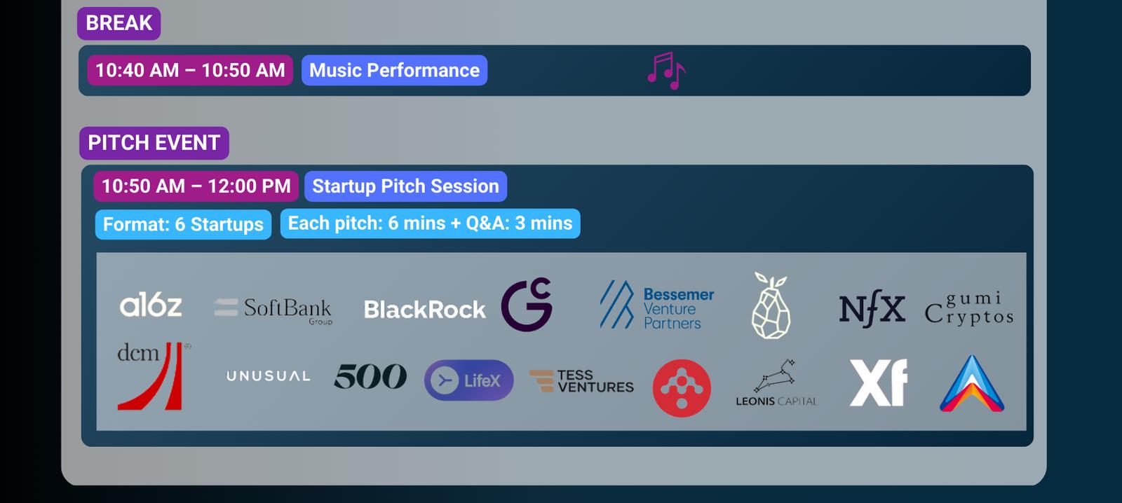 Post-Summit Benefits: A dedicated post will feature each Finalist company after their presentation. Each Finalist will receive professional video and photo assets from their pitch, as well as social media posts highlighting their participation.