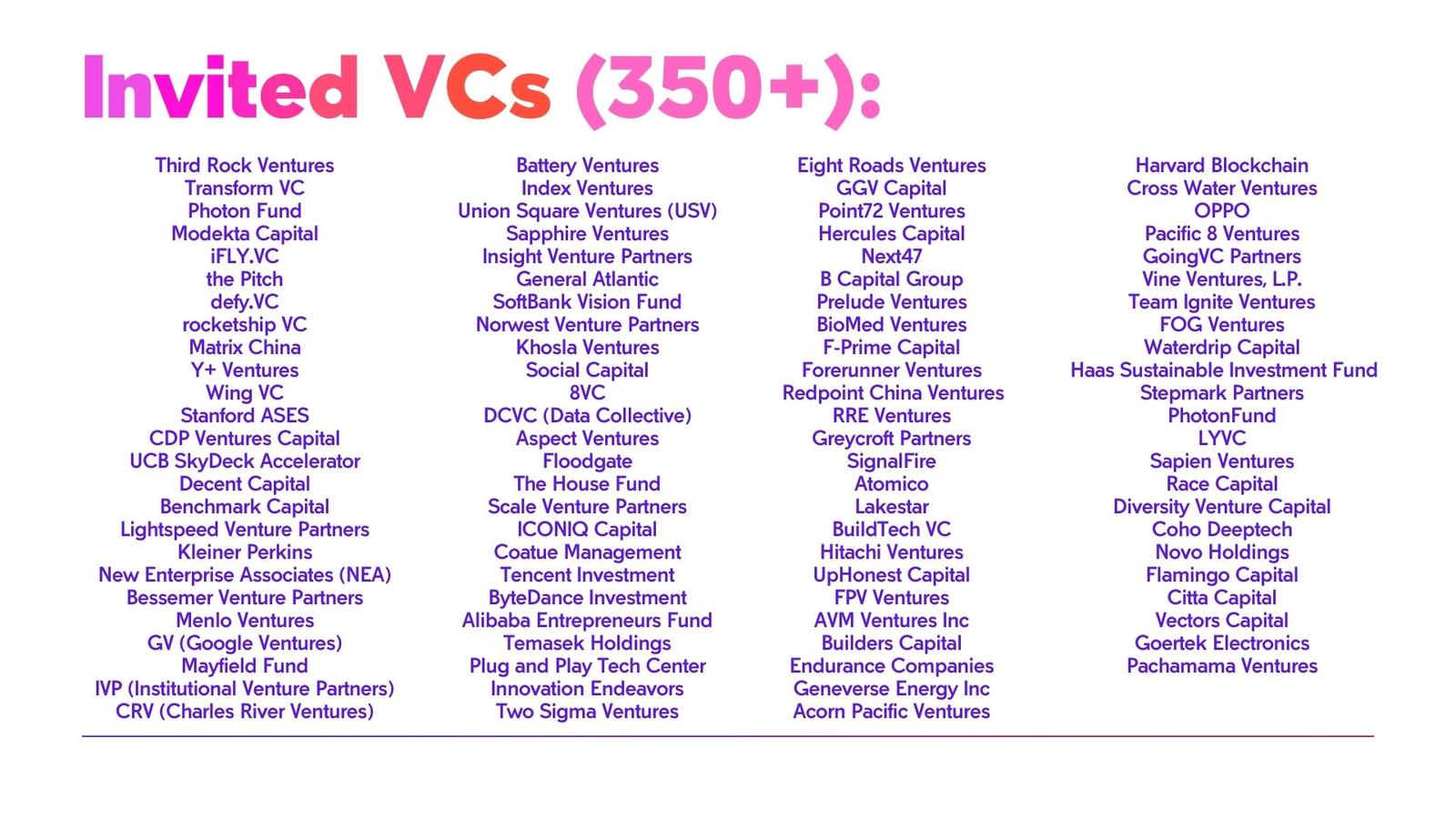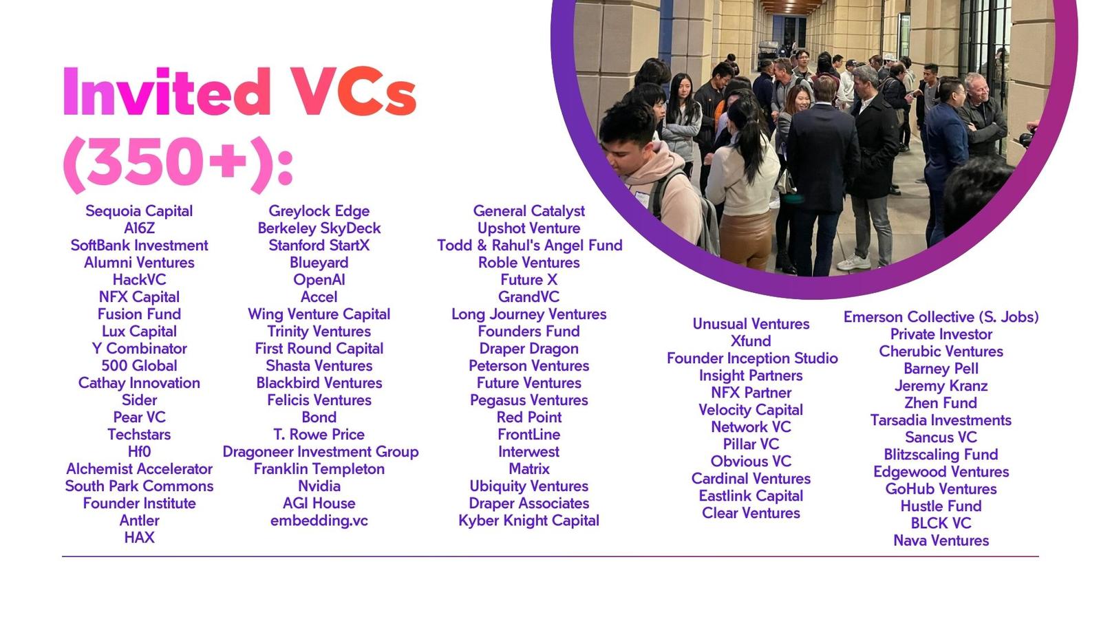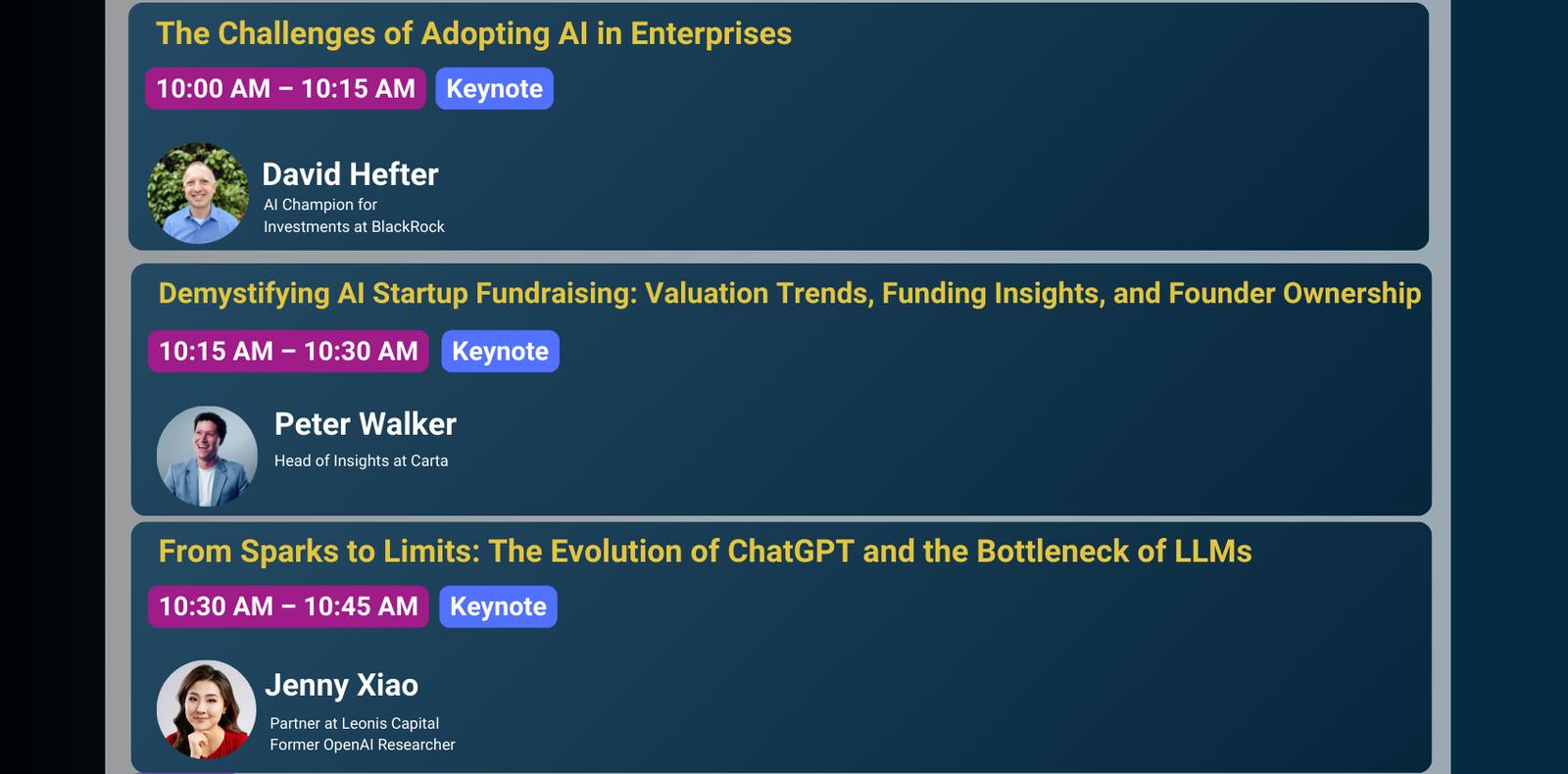 Applications close on December 30th, 2024. Each application is reviewed at least twice, and selected companies will be notified two weeks prior to the summit.