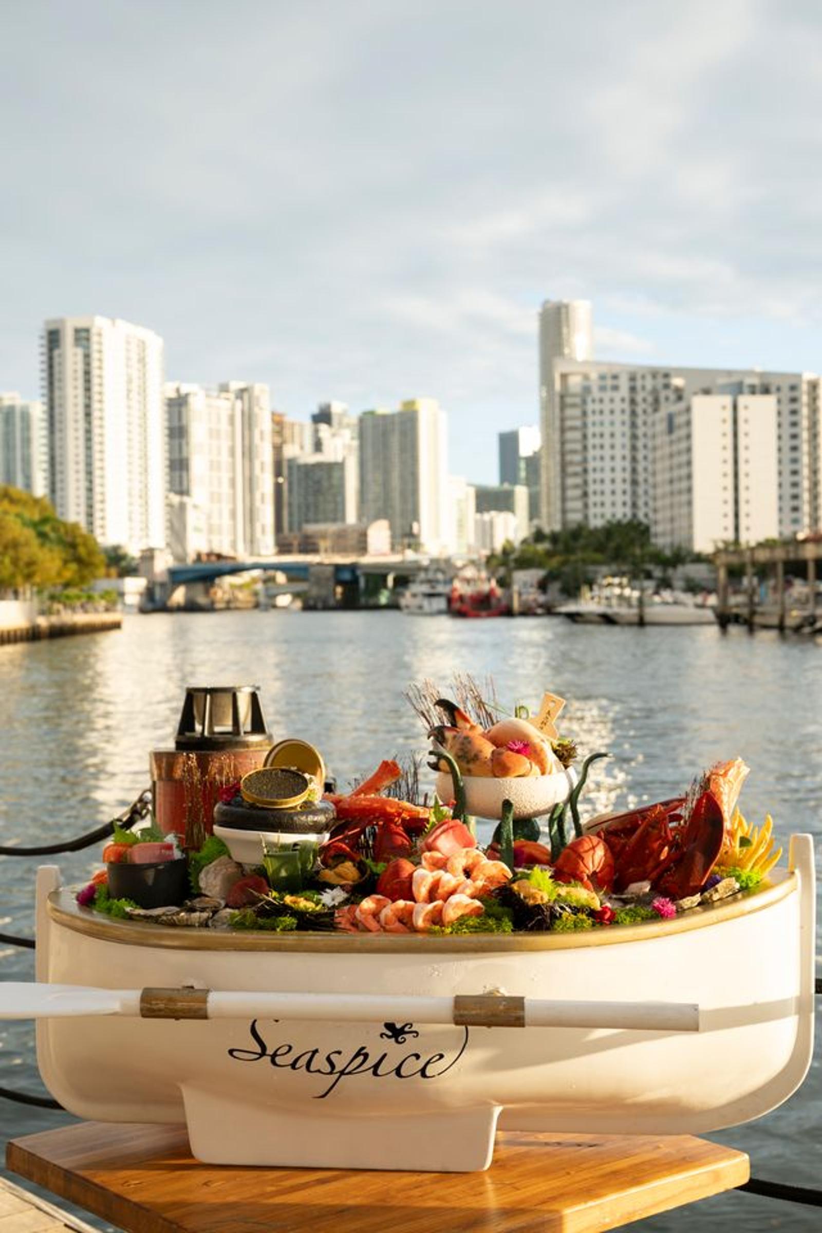 Seaspice is where Miami comes to see and be seen — a waterfront brasserie on the Miami River with stunning views of the downtown skyline. The menu embraces gastro-classic dining elevated through modern techniques, featuring signature casseroles and specialty cocktails that have made it a favorite of locals and visitors alike. The vibe is buzzy, the setting is gorgeous, and Thursday nights don't get much better than this.