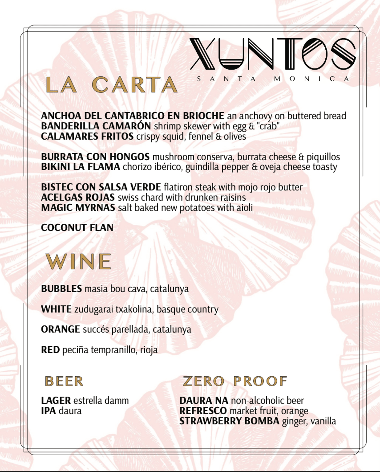 XUNTOS, which means “together” in Gallego, is the neighborhood tapas bar from chef Sandra Cordero located in downtown Santa Monica. The menu is a love letter to summers in Spain with jamón ibérico, empanadas, razor clams, and seasonal seafood sourced from the farmer’s market.