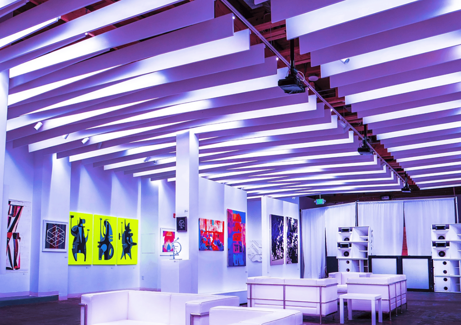 WITHIN THE VENUE: A three-story space illuminated by 80,000 LED bulbs, four distinct spaces each offering a unique experience, creating a vibrant and dynamic atmosphere.
