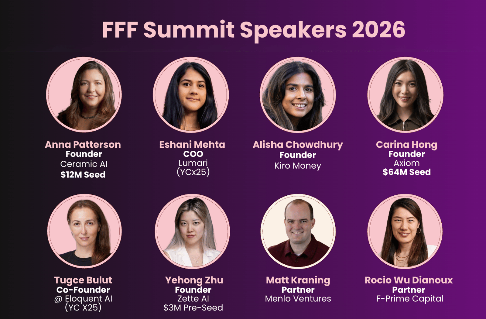 Who Should Attend: The FFF Summit brings together early-stage and funded founders from ideation through Series A+, alongside investors, operators, and male allies who actively support them. This is a curated, relationship-first gathering focused on meaningful conversations and long-term collaboration. The audience is intentionally founder-led: approximately 50% founders, 30% investors (VCs, angels, LPs, and funds of funds), 12% experienced operators, 5% ecosystem allies, and a limited 3% curated service providers to maintain a high-signal environment.