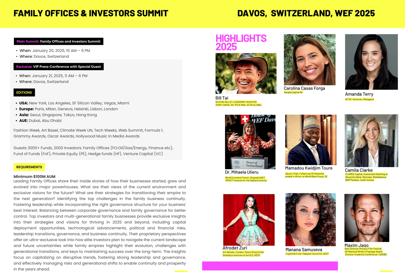 🇨🇭Invest Dinner: Family Office Investors Summit 🥂🕯Davos 2026📍January 19-24 2026