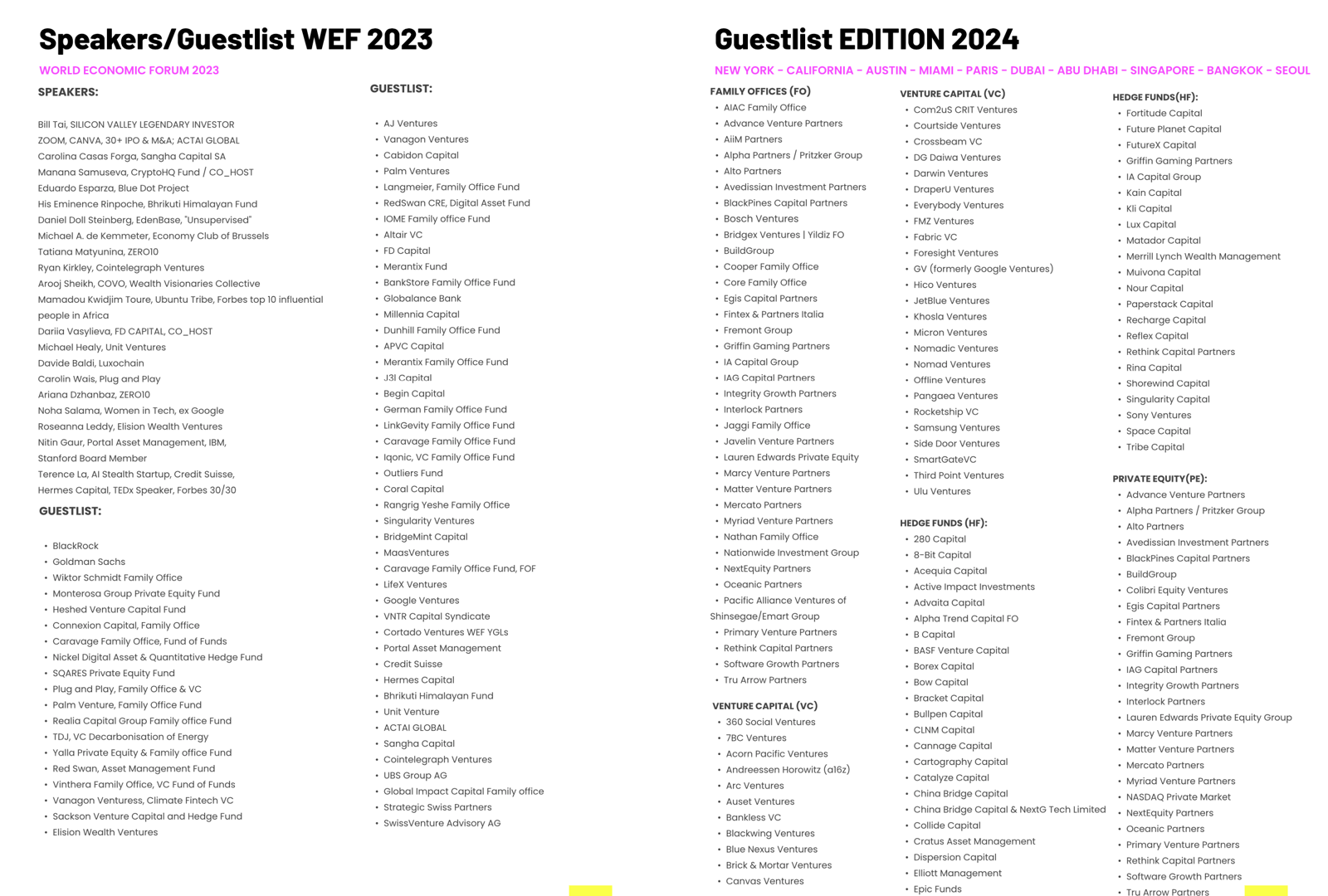 GUESTS: Andreessen Horowitz (a16z), 1AM Gaming, 280 Capital, 360 Social Ventures, 500 Emerging Europe, 500 Global, 7BC Ventures, 8-Bit Capital, 8020, AIAC Family Office, Acequia Capital, Achebe Capital, Acorn Pacific Ventures, Active Impact Investments, Advaita Capital, Advance Venture Partners, Aero X Ventures, AiiM Partners, Alibaba, Aligned Climate Capital, Alpha Partners, Alpha Partners Pritzker Group, Alpha Trend Capital FO, Alto Partners, Amino Capital, Amplify, Antler, Arc Ventures, Auset Ventures, Avedissian Investment Partners, B Capital, BASF Venture Capital, BGVArka, Bachmanity Capital, Bank of America, Bankless VC, Beckett Industries, Berkeley SkyDeck Fund, BlackPines Capital Partners, Blackwing Ventures, Bloomberg Beta, Blue Nexus Ventures, Borex Capital, Bosch Ventures, Bow Capital, Bracket Capital, Brick & Mortar Ventures, Bridgex Ventures | Yildiz Family Office, Brookfield Growth, BuildGroup, Bullpen Capital, CLNM Capital, Cannage Capital, Canvas Ventures, Carbide Ventures, Cartography Capital, Catalyze Capital, China Bridge Capital, China Bridge Capital & NextG Tech Limited, Colibri Equity Ventures, Collab+Currency, Colle Capital, Collide Capital, Com2uS CRIT Ventures, Coolwater Capital, Cooper Family Office, Core Family Office, Core Innovation Capital, Courtside Ventures, Cratus Asset Management, Crossbeam VC, Crossover VC, Cystic Fibrosis Foundation, DART Ventures, DG Daiwa Ventures, Darwin Ventures, Decisive Point, Deel, Diagram, Dispersion Capital, DraperU Ventures, ELK Development, East Sunshine Ventures, Egis Capital Partners, Elevate Wellness, Elliott Management, Enlightened Hospitality Investments, Epakon Capital, Epic Funds, Everybody Ventures, Expert DOJO, FMZ Ventures, Fabric VC, Failup Ventures, Fear of Pasta, Fellows Fund, Ferment, Fingaroo, Fintex & Partners Italia, Fitch Ventures, Fluent Ventures, Flyer One Venture, Fontinalis, Foresight Ventures, Fortitude Capital, Forum Ventures, Fremont Group, Future Planet Capital, FutureX Capital, GPN Investment, GV, GV (formerly Google Ventures), Galaxy Interactive, Griffin Gaming Partners, Hartmann Capital, HashKey Capital, Hico Ventures, IA Capital Group, IASV Seed Ventures, IDC Ventures, Impulsum Ventures, Inicio Ventures, Innovent Capital, Interlock Partners, Ion Pacific, Istari Ventures, J17 Capital, JetBlue Ventures, Javelin Venture Partners, K50 Ventures, Kain Capital, Kavantsaari Capital, Kenetic, Khosla Ventures, Kineo Finance, Kismet Ventures, Kli Capital, Kuma Capital, Kyber Knight Capital, Lauren Edwards Private Equity Group, Lewis and Clark AgriFoo, Lockheed Martin Ventures, Lumia Capital, Lux Capital, MAGIC Fund, Mantis VC, MarketX Ventures, Matador Capital | DSCVR, Merrill Lynch Wealth Management, Micron Ventures, Mirae Asset Global, Mobius Ventures, Mofo Capital, Morpheus Ventures, Muivona Capital, Myriad Venture Partners, NASDAQ Private Market, Nathan Family Office, Nationwide Investment Group, New York Life Ventures, Nomadic Ventures, Nomad Ventures, Nour Capital, OC GPN CLUB, OK Capital, Offline Ventures, Outlander VC, PERSEA Ventures, Pacific Alliance Ventures of ShinsegaeEmart Group, Pangaea Ventures, Paperstack Capital, Plum Alley Ventures Company, Plug and Play, Point72 Ventures, Post Urban Ventures, Practical VC, Primary Venture Partners, Primer Sazze, Primitiva Global, Private VC, Propy Inc. & NextTech Ventures (CSO), Prosperity7 Ventures, Protocol VC, R42, Radian Investment Management, Rakuten Ventures, Recharge Capital, Red Beard Ventures, Reflex Capital SE, Rethink Capital Partners, Rina Capital, Robo Global, Rocketship VC, Roosh.tech, SMB Investments Streetlife Ventures, SaaS Wealth Fund, Samsung Ventures, Sandbox, Sandbox Studios, Scope Ventures, Scrum Ventures, Shakti Capital, Shorewind Capital, Side Door Ventures, Singularity Capital, SmartGateVC, Software Growth Partners, Sonen Capital, Sony Ventures, Space Capital, Spatial Capital, Streetlife Ventures, Summit LP, Superstate, Syon Capital, TIRTA Ventures, TJC, TLS Dubai, TPG, Techstars, TenSquared Capital, Tencent, Tencent Games, Testnet, The Artemis Fund, Third Point Ventures, Tilden Capital family office, Touchdown Ventures, Transform Capital, Translink Capital, Tribe Capital, Tru Arrow Partners, Turan & Everle FO, UBS, Ulu Ventures, United Nations, VDOSH Ventures, VU Venture Fund, Valia Ventures, Verlinvest, Vesta Ventures, Vinthera, Void Venture Capital, Wadson Ventures, Walden Catalyst Ventures, Wells Fargo, Wilshire Lane Capital, Zahren Capital, aVenture, Alto Partners.