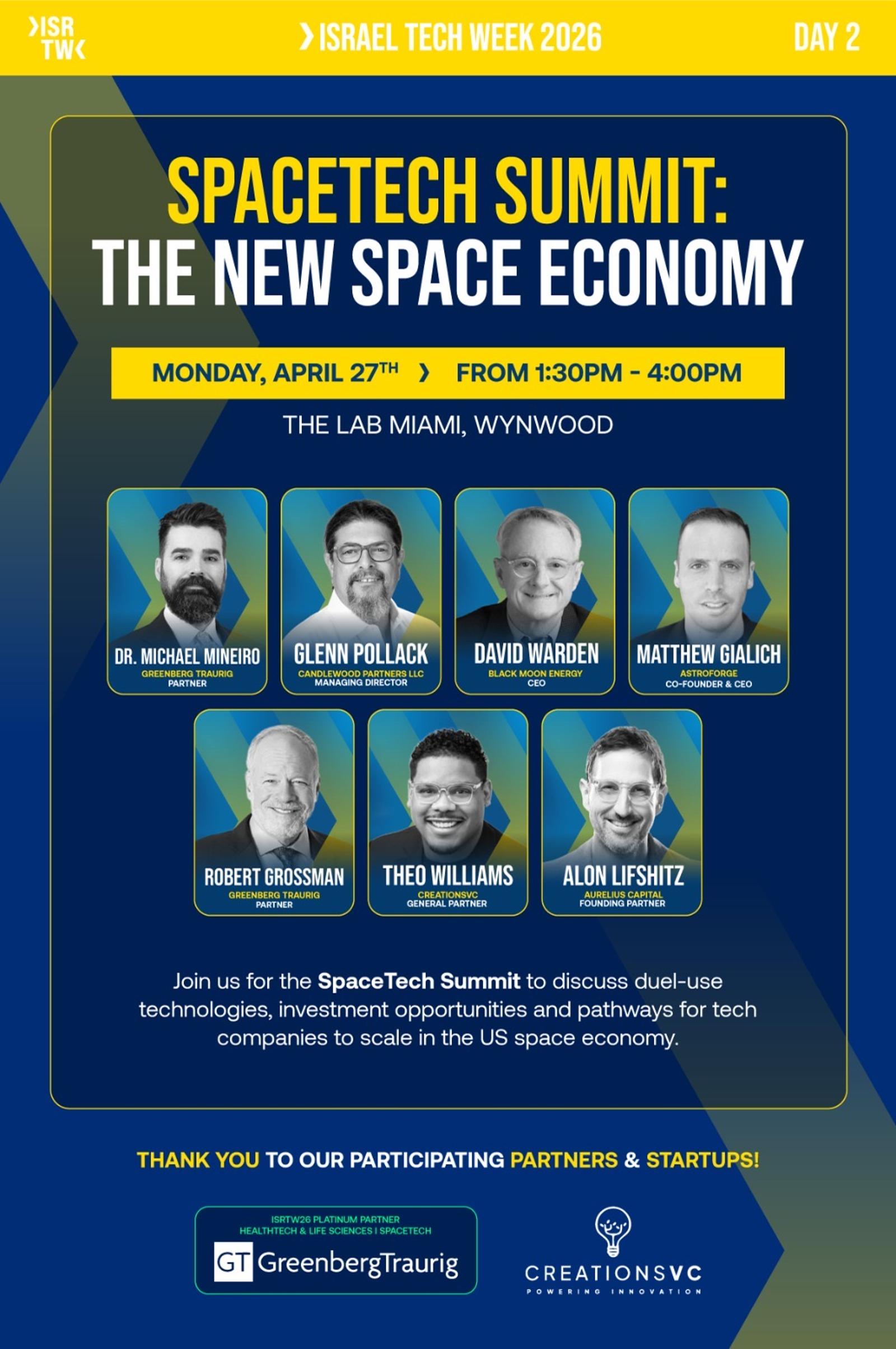 โJoin us for the SpaceTech Summit at Israel Tech Week Miami 2026, where founders, aerospace leaders, investors, and defense innovators come together to explore a new wave of space technologies, satellite systems, and data-driven infrastructure.