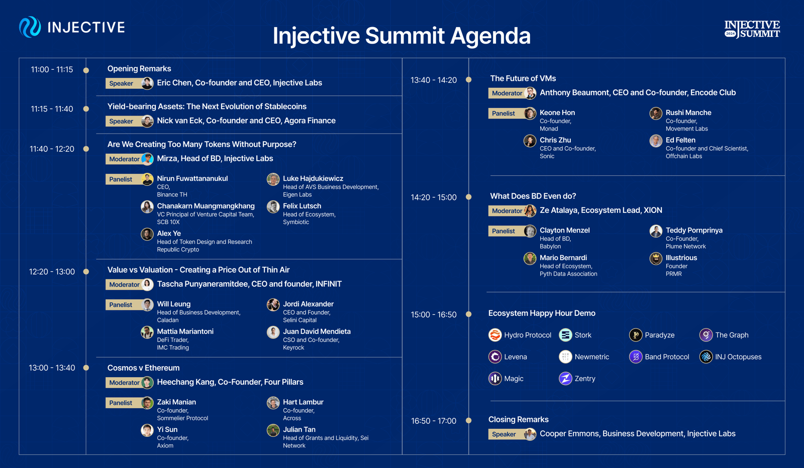 Injective is committed to propelling the financial system forward through blockchain technology. Join us for a full day, packed with insightful discussions, innovative technologies, and boundless networking opportunities. Whether you're a developer, entrepreneur, or enthusiast, the Injective Summit 2024 is your gateway to advancing in the digital frontier.