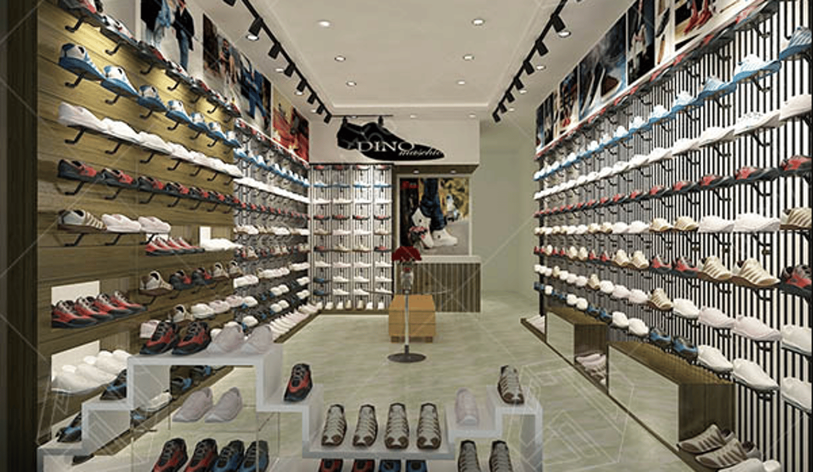 Sklepy z butami zależą również od tego, w jaki sposób mają być one eksponowane. Luksusowe i drogie buty potrzebują dużej przestrzeni do dekoracji, podczas gdy niedrogie produkty mogą z łatwością wypełnić mniejsze powierzchnie, ponieważ oprócz lub zamiast jednej półki ekspozycyjnej mamy dwie: Jeden na wysokości oczu, gdzie ludzie podchodzą do jego szklanych gablot, patrząc w nie z góry, jakby prosząc bogów o błogosławieństwo przed zakupem czegoś nowego; drugi w dolnym rogu z dostępnymi krzesłami, aby kupujący mogli wypróbować swoje wybory, niekoniecznie kupując od razu cokolwiek - w końcu to musi być modowa terapia!