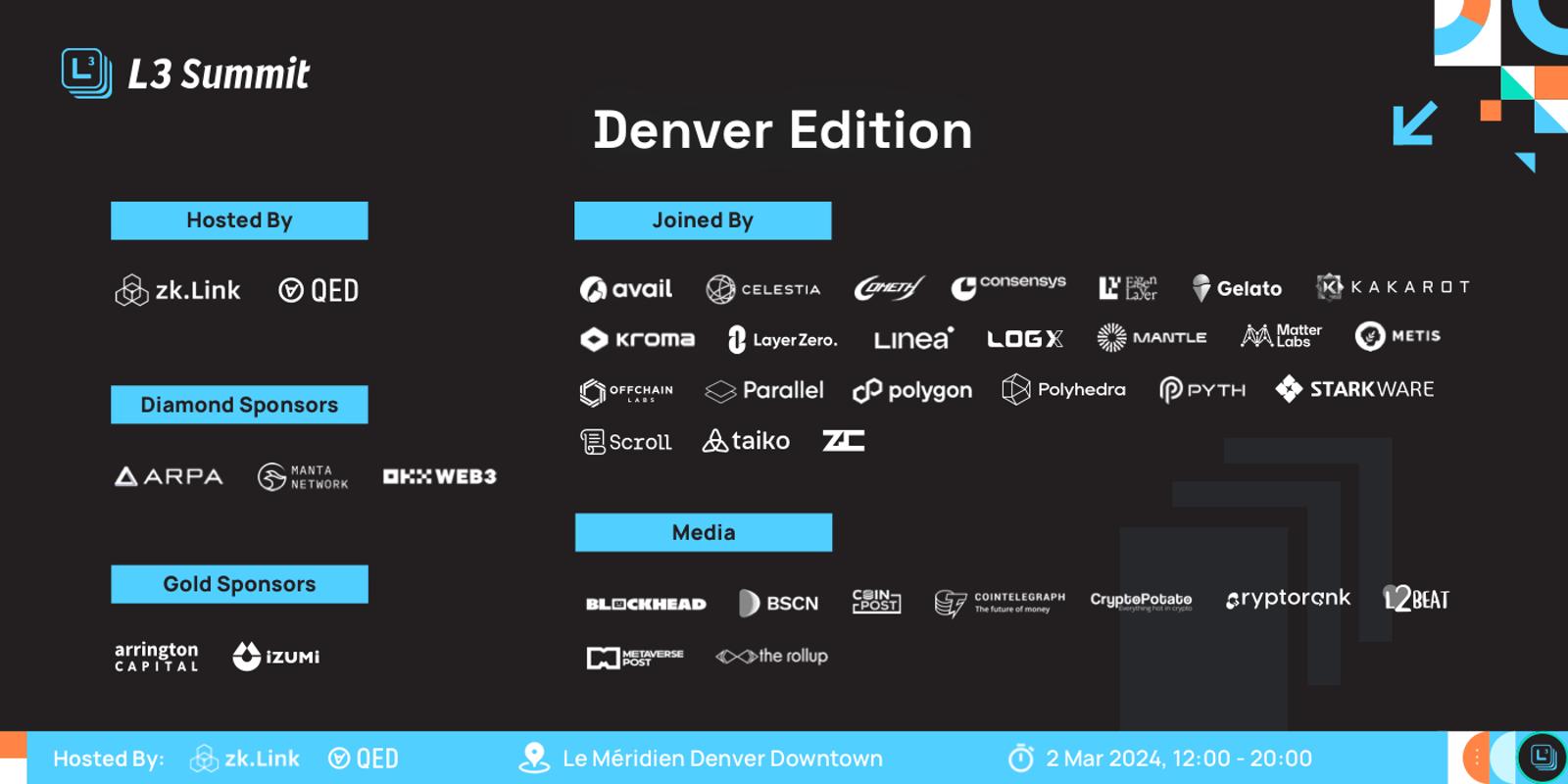 L3 Summit: Denver Edition is a zkLink-initiated event series that educates, amplifies, and shares research about the current status of Layer 3 development from the world's leading Layer 1 and Layer 2 blockchain protocols.