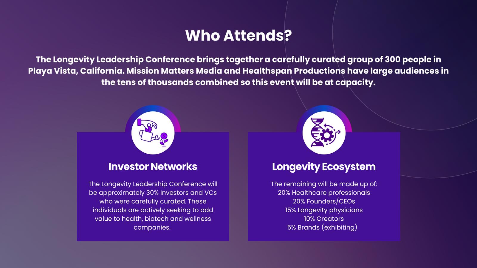 โAn exclusive gathering designed for investors, medical professionals, and trailblazers redefining the future of human longevity and healthspan.