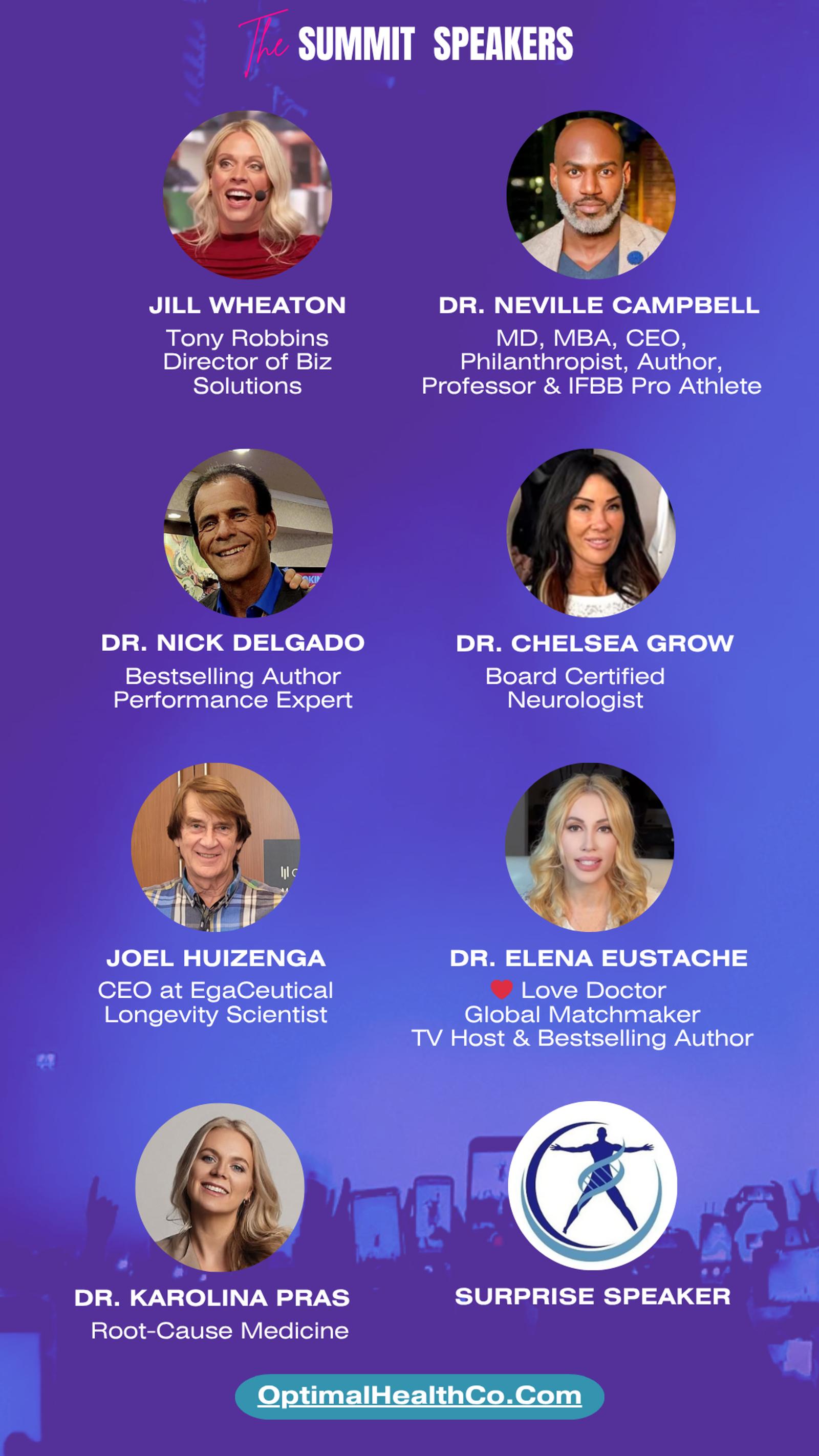 You’ll be guided by a dynamic lineup of expert speakers, each a leader in their field and passionate about helping you unlock your next level of performance, clarity, and vitality.