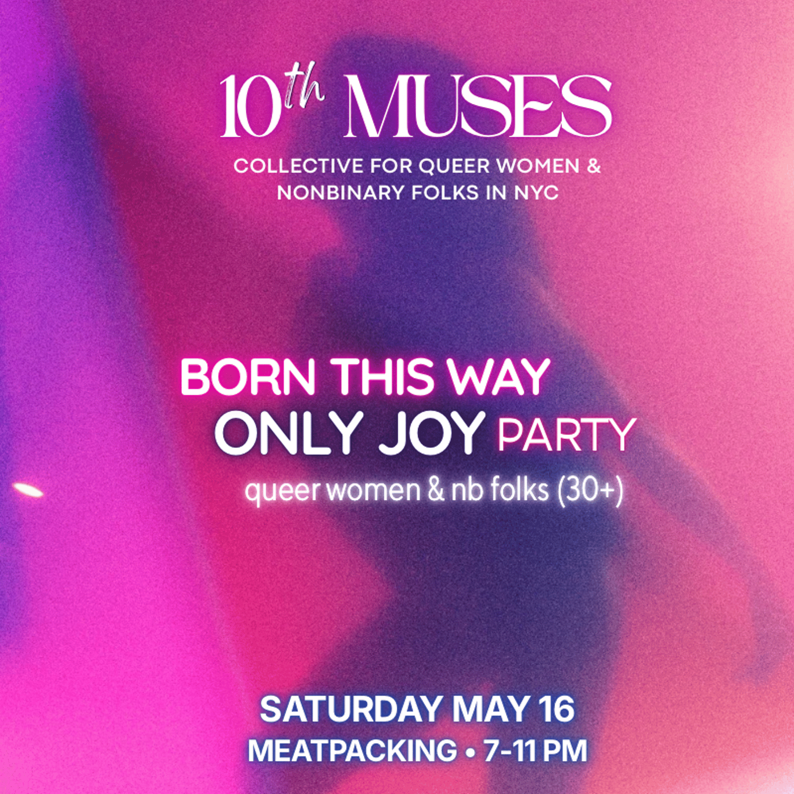 ✨ 10th Muses invites our queer, lesbian, & nonbinary friends (30+) to our monthly party on Saturday, May 16, 7–11pm in Meatpacking. ✨