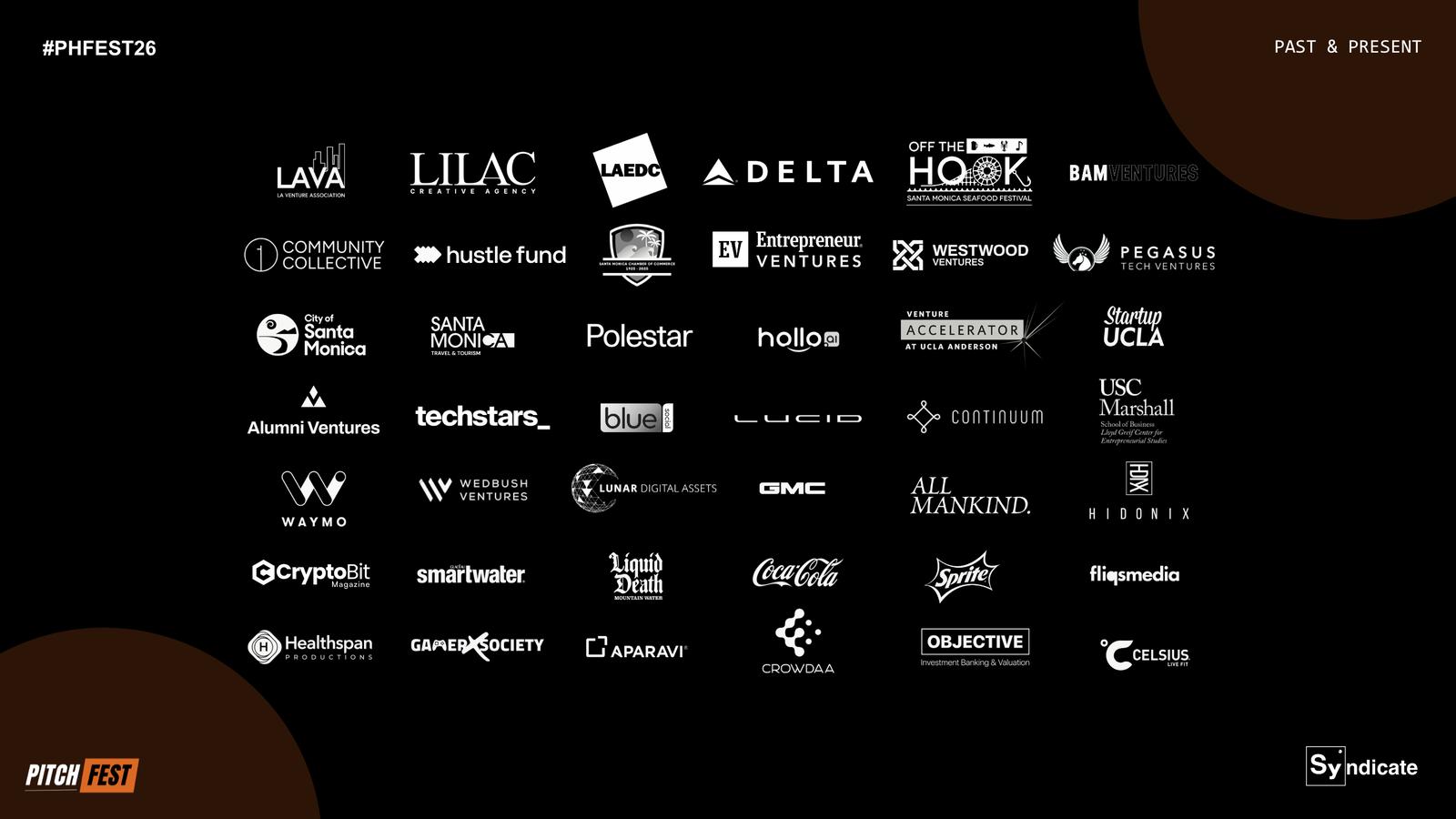 With 200K+ newsletter subscribers, 60K+ Luma subscribers, and 1,500+ attendees at our flagship events, PitchFest has become the go-to platform for West Coast startup-investor connections. Our track record includes partnerships with Delta Airlines, Lucid Motors, the City of Santa Monica, and Pegasus Tech Ventures, and we serve as the official Los Angeles Regional host for Startup World Cup — where the winner advances to compete for a $1,000,000 investment prize.