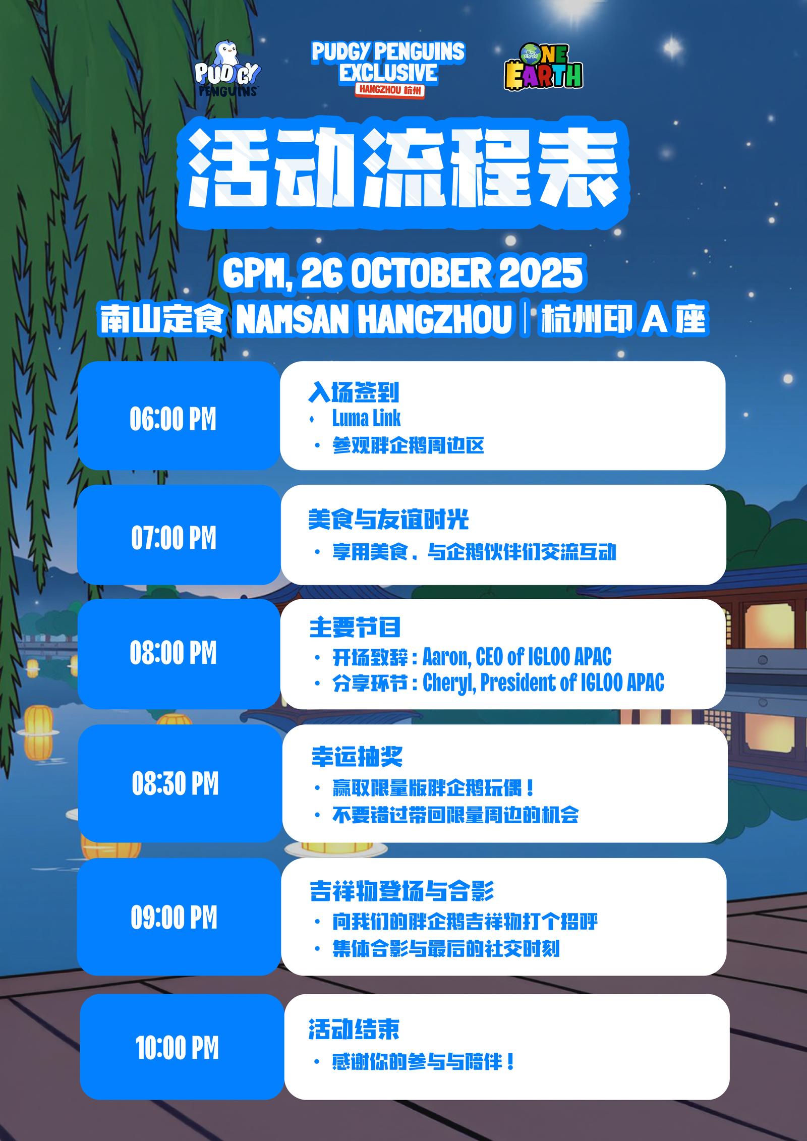 诚邀杭州的 Pudgy Penguins 家人们加入我们的聚会,与胖企鹅的爱好者建立联系及交流!