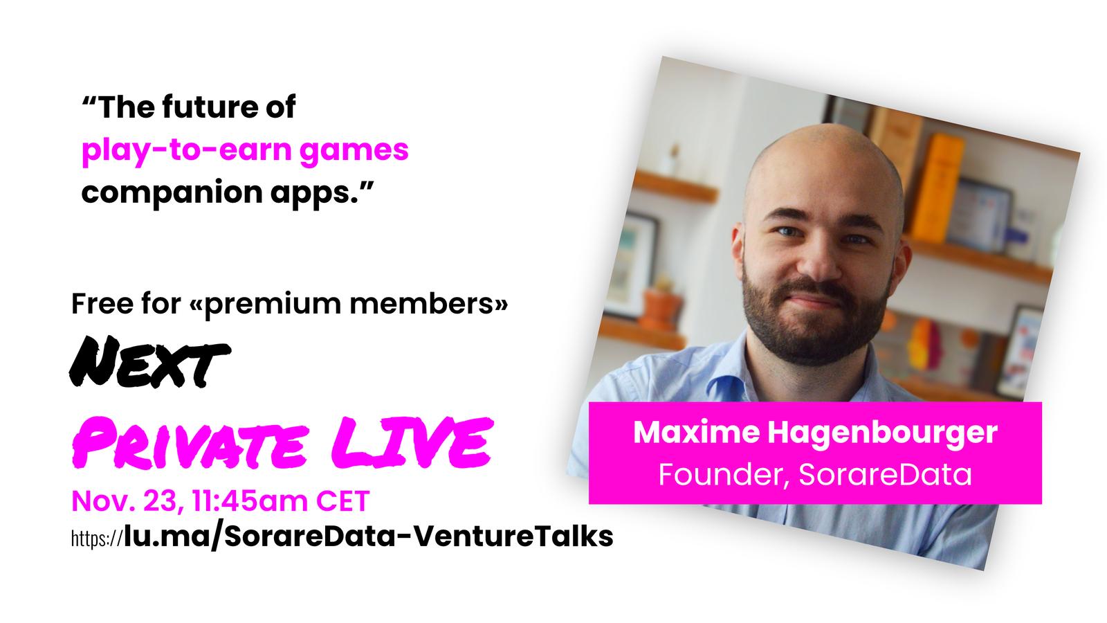 🔥 On Tuesday Nov. 23rd, at 11h45am CET, we will be discussing live for our «Venture Talks #6» with Maxime Hagenbourger, Founder of SorareData who recently raised a $700k pre-seed round led by Seedcamp. Hmmm Seedcamp? Sorare? Yes. We had on the show Sia Houchangnia, VC & Partner @ Seedcamp (full replay here) who had backed Sorare at its $500k seed round early 2019. A few days back, Sorare raised $680 million for its fantasy sports NFT game.