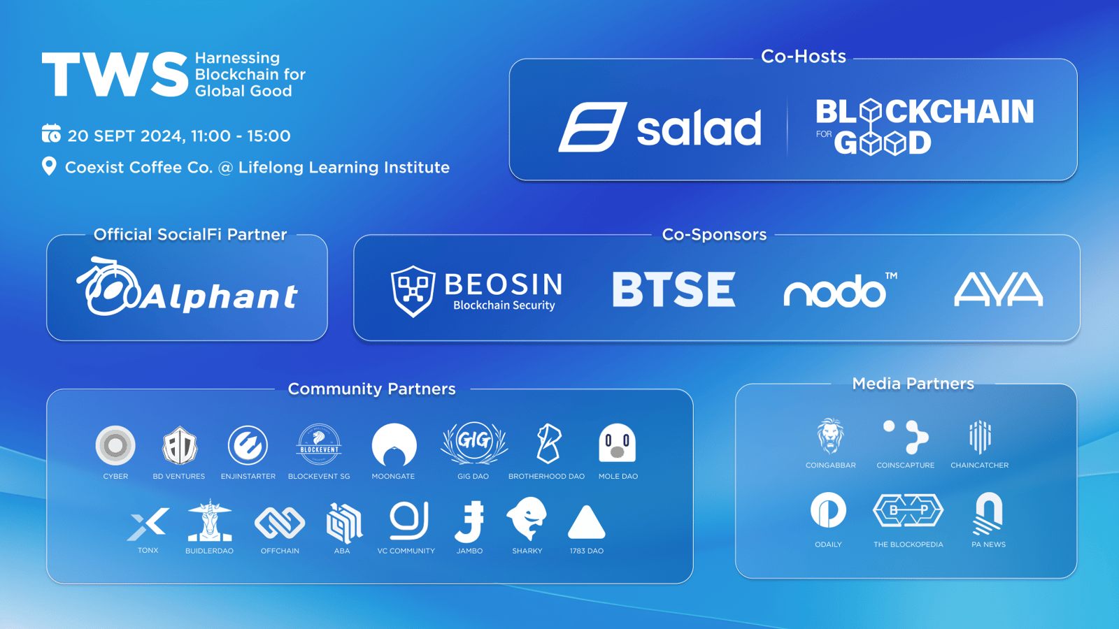 A special shoutout to our amazing co-host Blockchain for Good Alliance (BGA), our SocialFi Partner Alphant, and our incredible co-sponsors Beosin, BTSE, NODO, and AYA Foundation for helping us elevate this event to new heights! 🚀