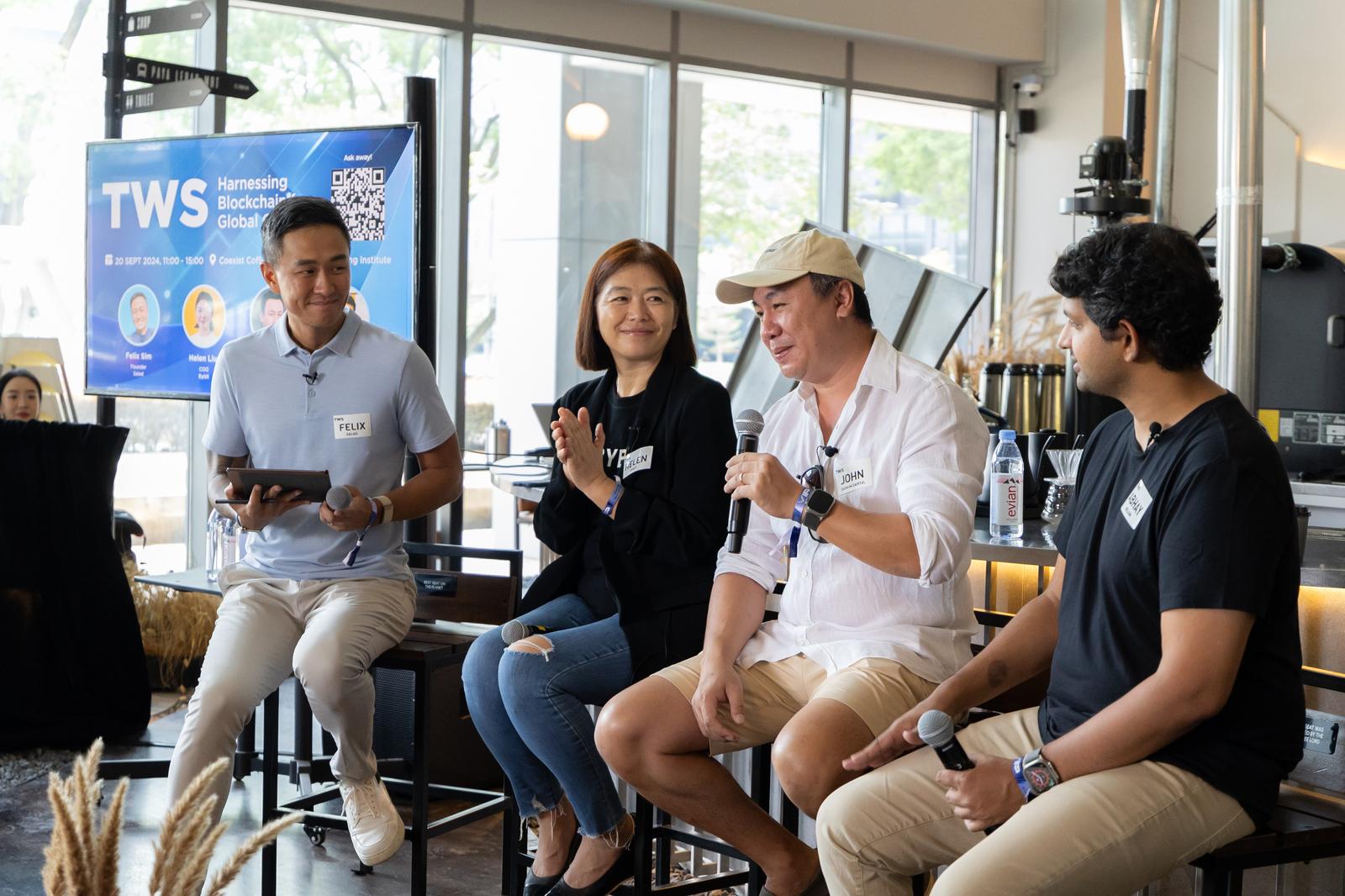 This session, themed "Harnessing Blockchain for Global Good" featured a dynamic panel discusssion led by our founder, Felix Sim (top right), alongside Helen Liu (top middle), COO of Bybit, John Ng Pangilinan (bottom left), Managing Partner of Signum Capital and Abhay Kumar (bottom middle), CEO of Helium.