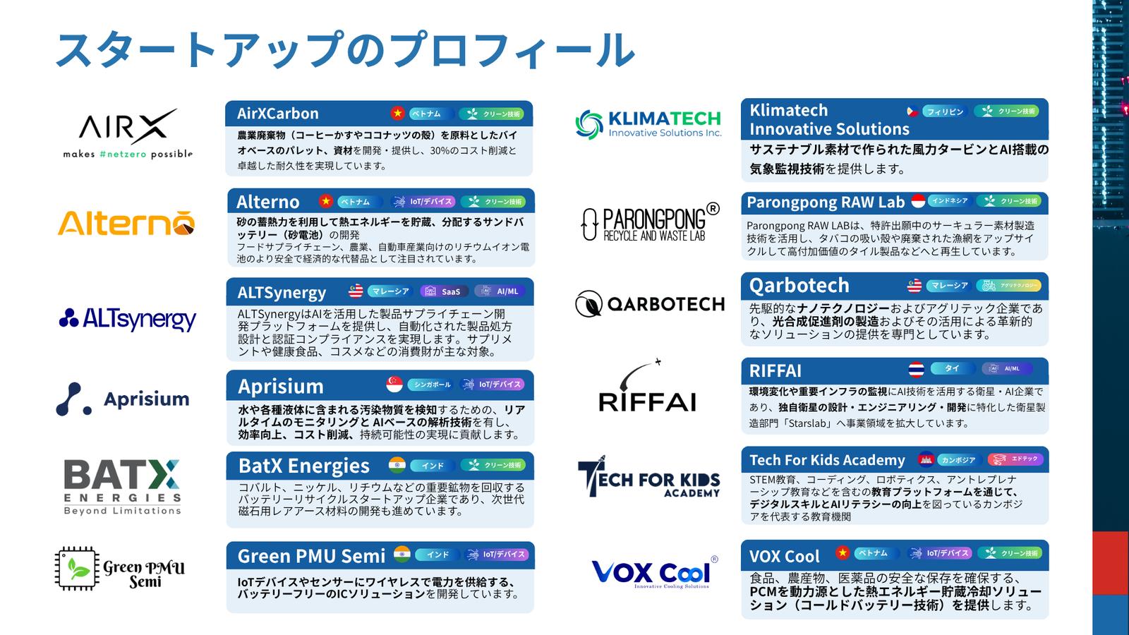 💡 ASEAN8か国およびインドの有望スタートアップ12社によるピッチ