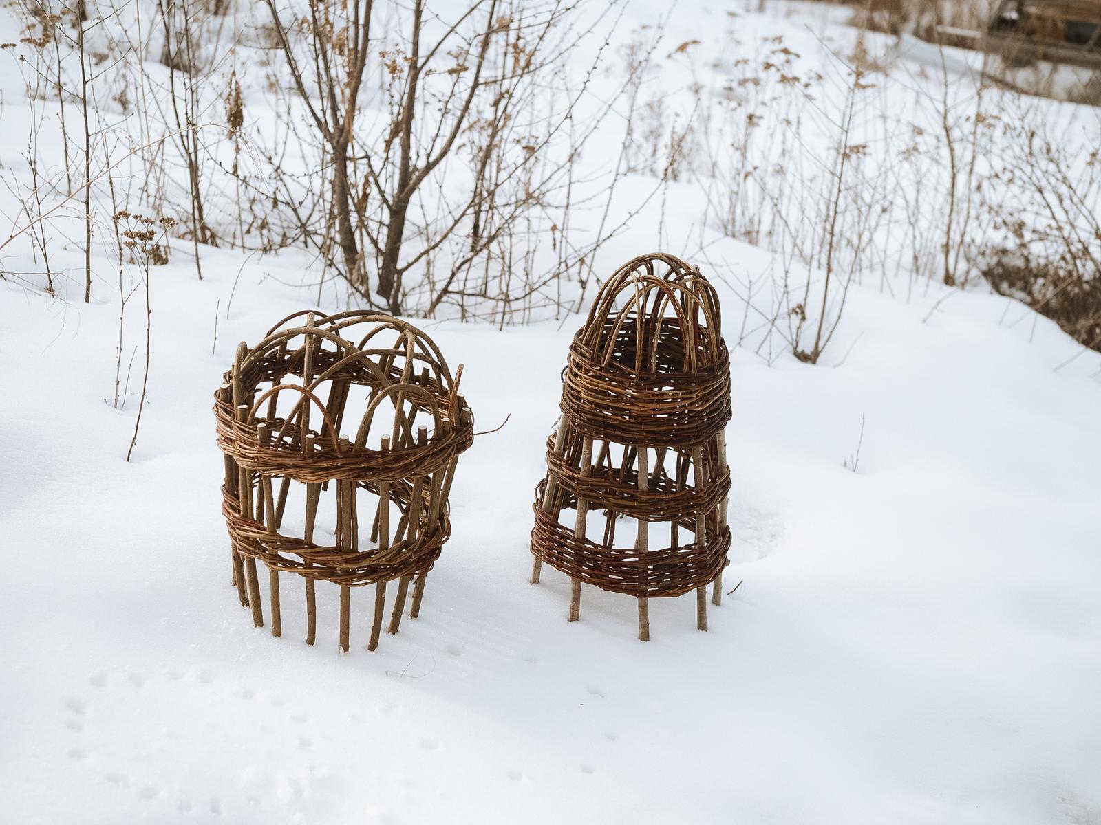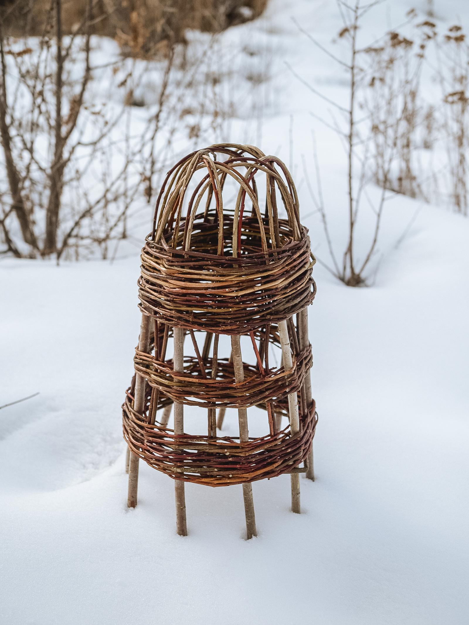 One of my favourite uses for a cloche is to protect seedlings and provide support when covering tender plants with a blanket on frosty nights. I will show you how to weave a special variation of a rope coil weave so you can minimize having pokey bits on the outside which can catch and cause rips in your blanket.