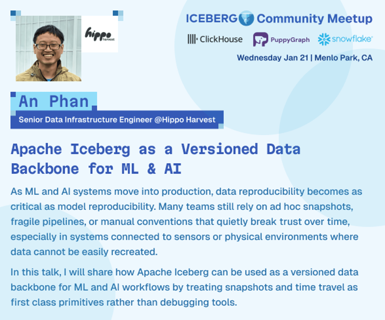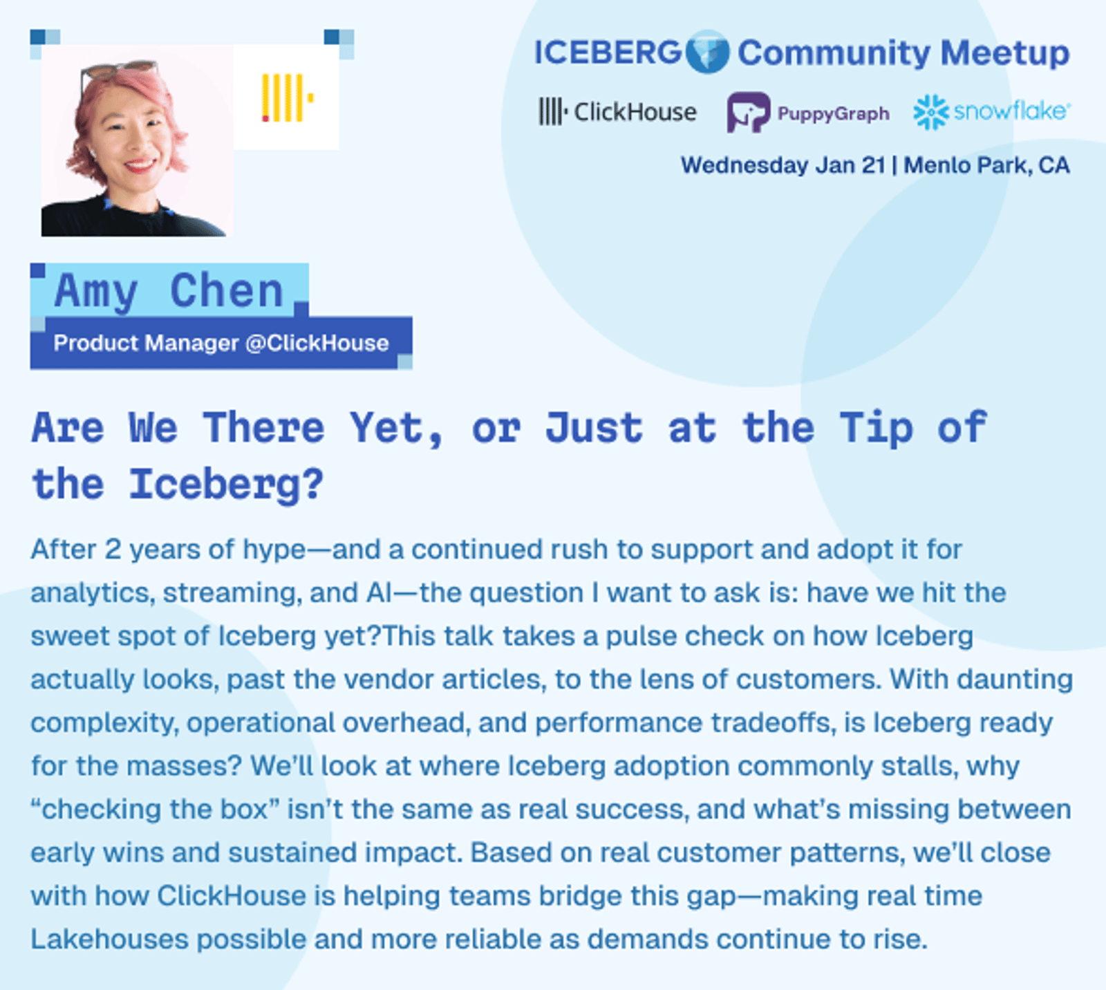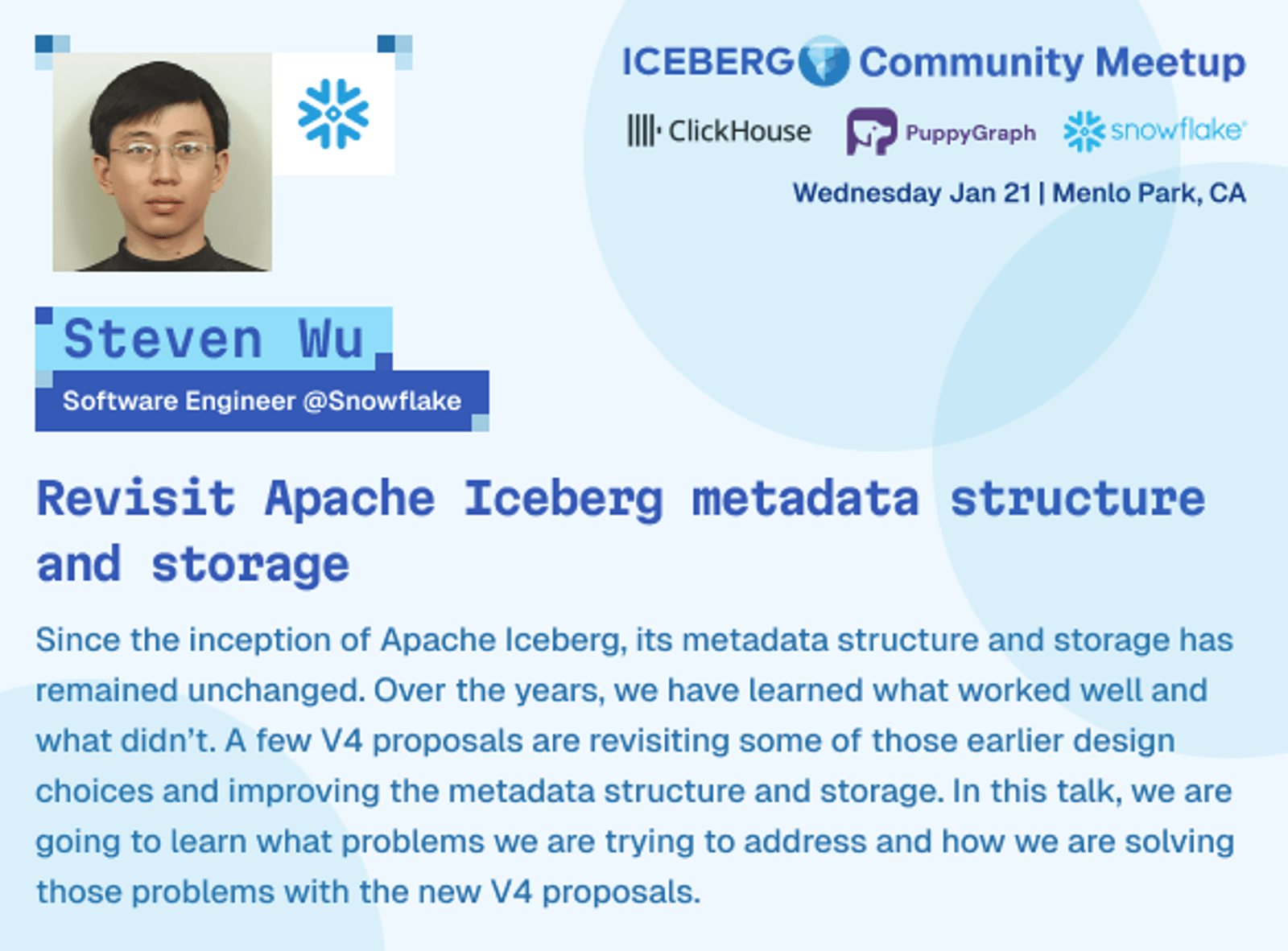 Join the Iceberg Community on Wednesday, January 21st at the Silicon Valley AI Hub in Menlo Park for an Iceberg meetup!