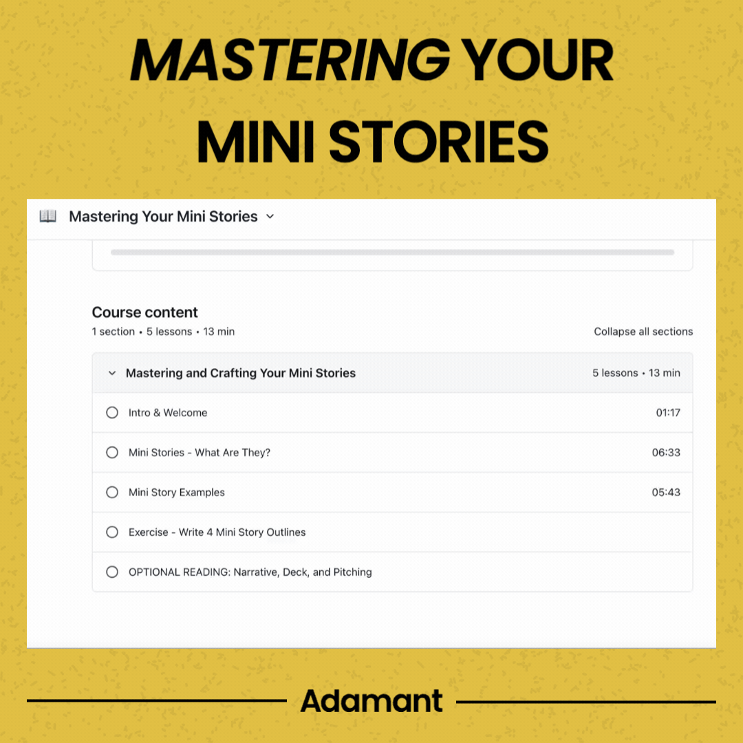 Gain access to our free mini-course on utilizing mini-stories in your pitch: