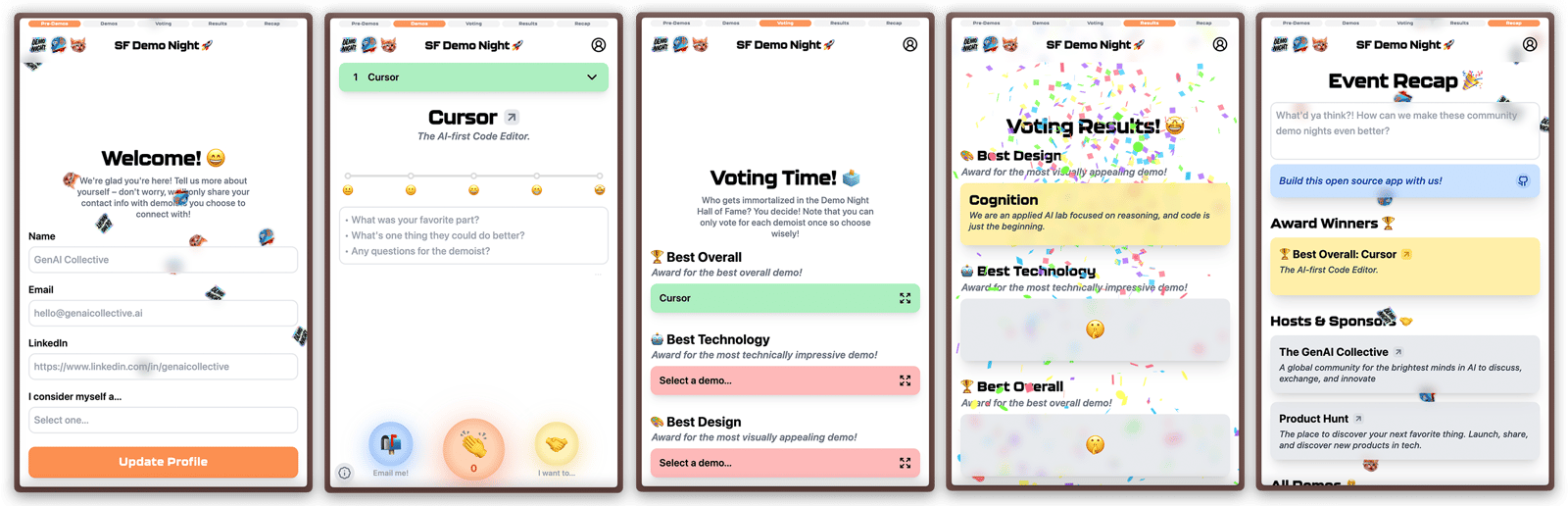 ​​Interactive Experience: Engage with startups by sharing feedback, requesting early access to products, and proposing partnerships during each pitch.