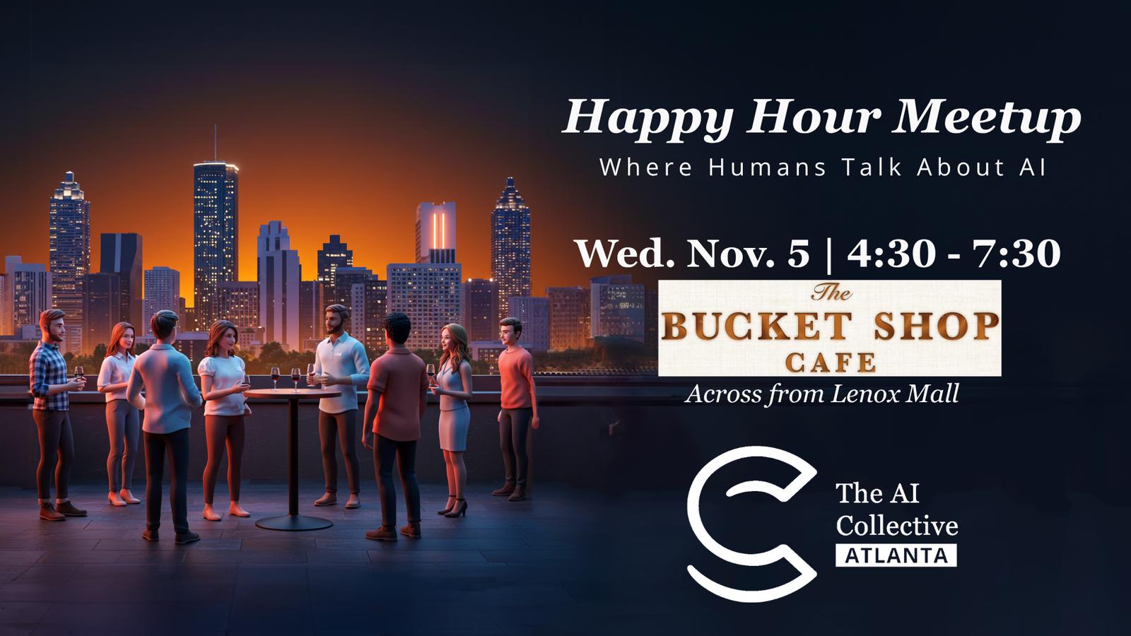 Meet AI professionals and enthusiasts at the AI Collective ATL Happy Hour, Nov 5, 4:30-7:30 @ Bucket Shop Cafe, across from Lenox Mall!