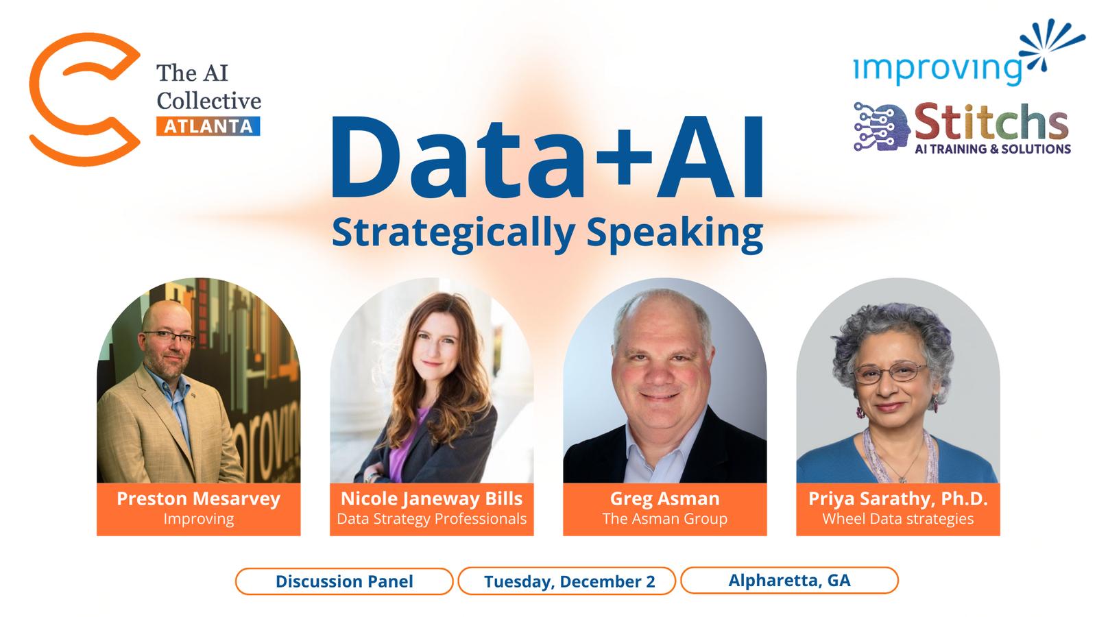 On Tue., Dec. 2 at Improving in Alpharetta, The AI Collective Atlanta welcomes panelists: