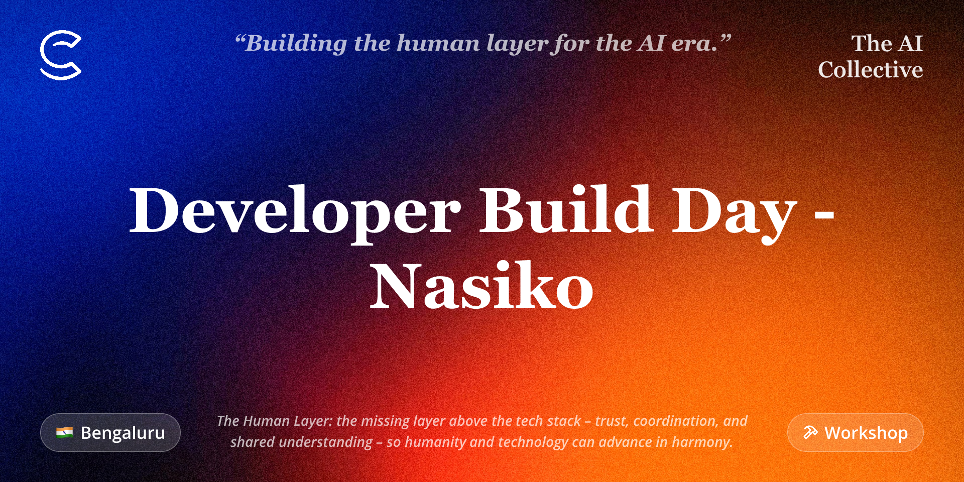 The AI Collective Bangalore is teaming up with Nasiko for an invite-only Developer Build Day. This isn't a demo you sit through — it's a hands-on session where you deploy real AI agents on Nasiko's platform, get live support from the core team, and walk away with something that actually works.