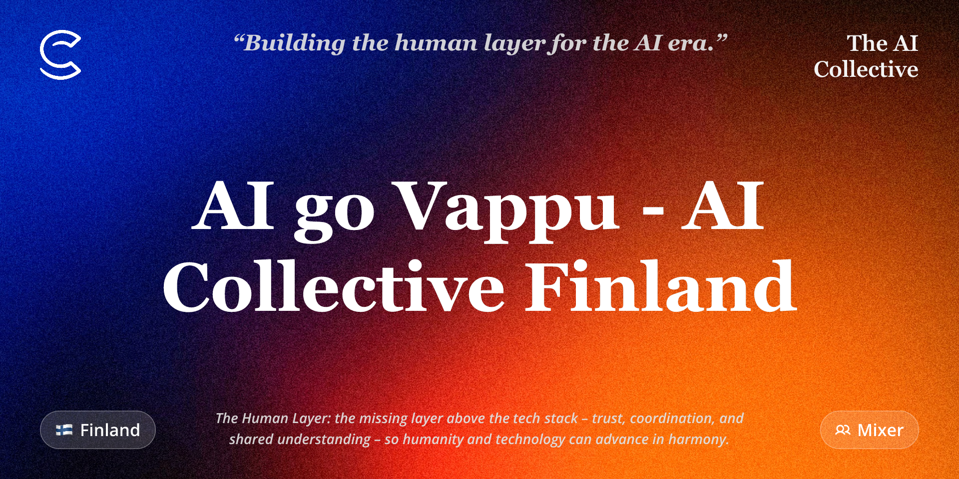 The AI Collective is a global non-profit building the human layer for the AI era. We unite 200,000+ leaders, builders, and stakeholders across 100+ forums worldwide to democratize the frontier, build trust, and coordinate how society navigates the rapid acceleration of technological progress.