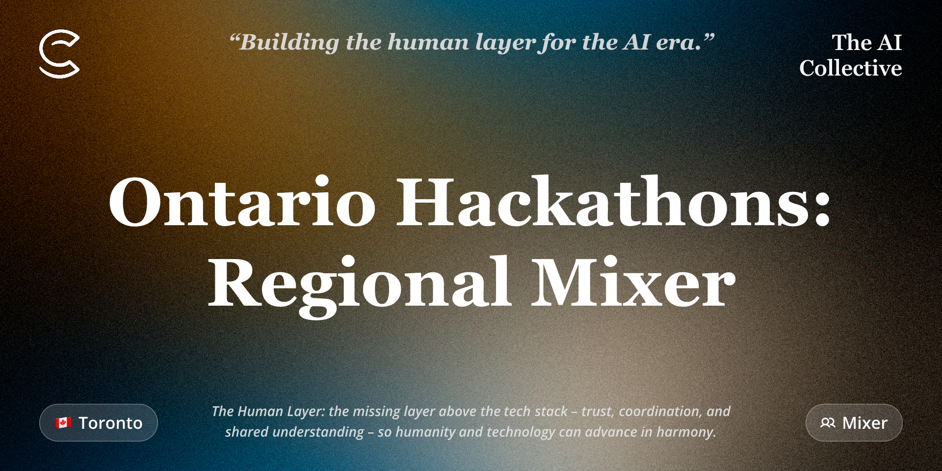 The Ontario Hackathon Coalition is a grassroots effort incubated by The AI Collective. Our mission is to unite and amplify Ontario's hackathon community. This is the beginning.