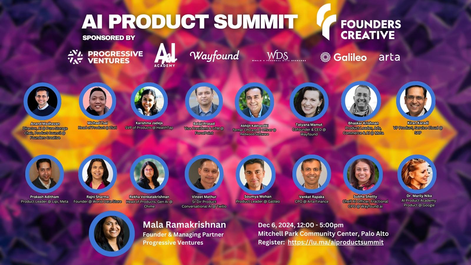 A half-day summit on AI Product Management on Dec 6th in Palo Alto for senior product leaders hosted by Founders Creative, a community of 10,000 product leaders, founders, investors and executives in Silicon Valley.