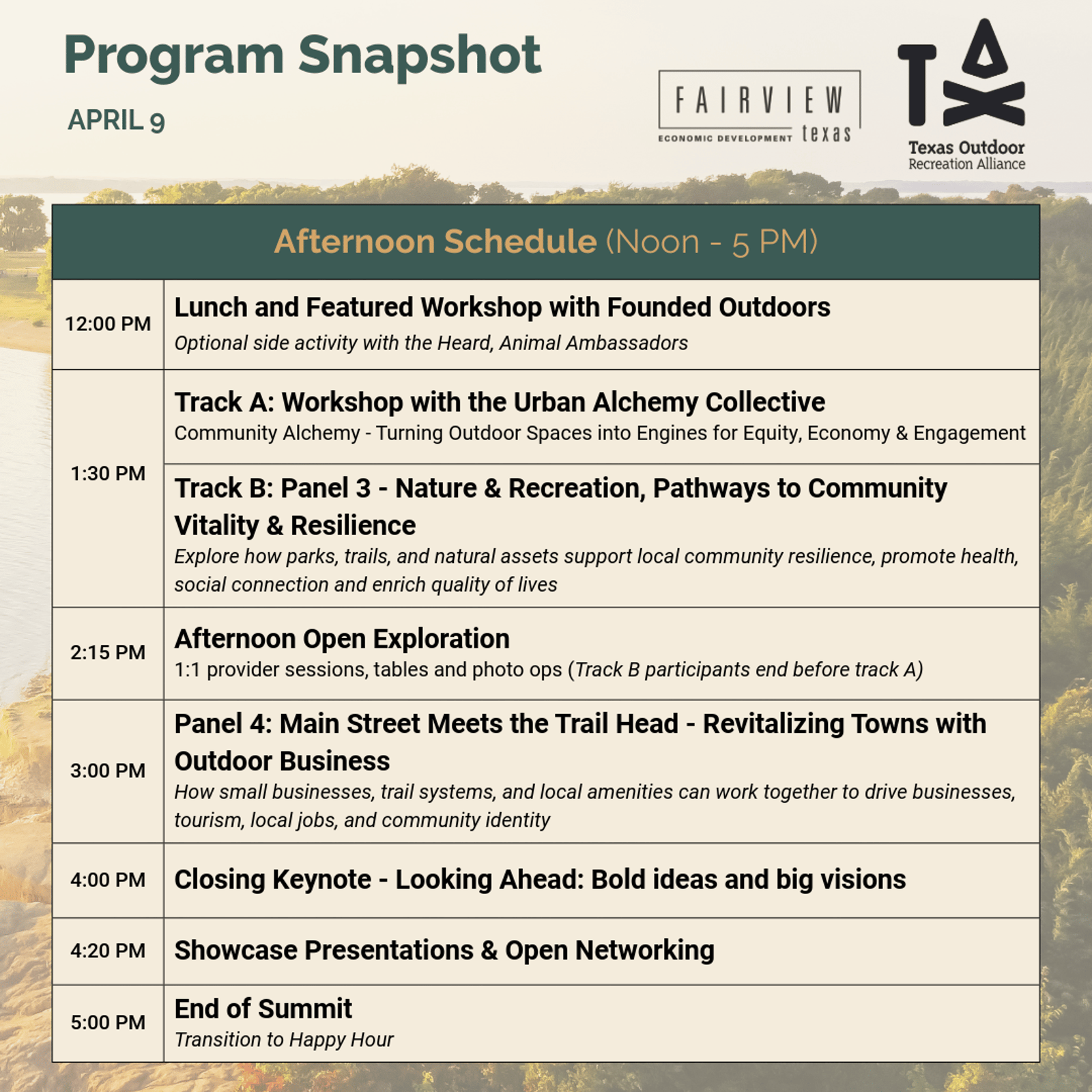 Texas Outdoor Economy Summit, Fairview